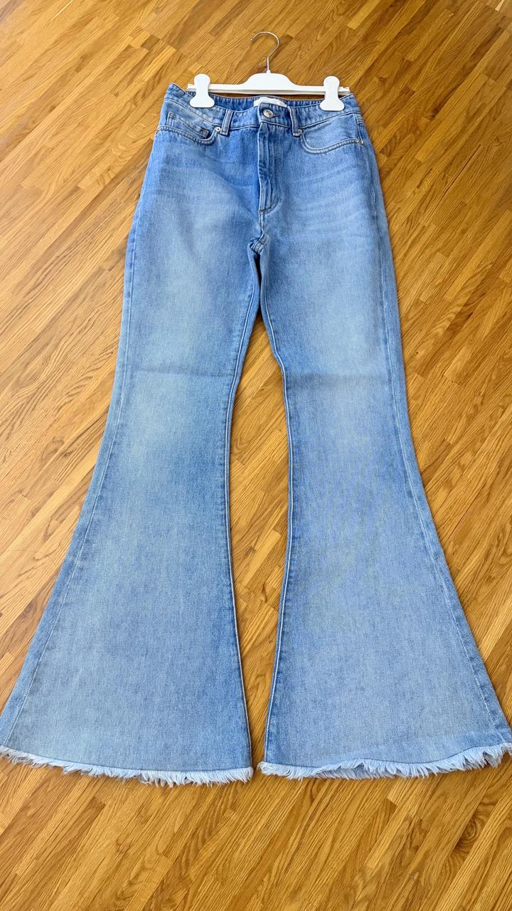 Новые джинсы клеш SportMax от MaxMara. Бирки срезаны, ни разу не надевались. Правильный клеш, плотная джинса. Подойдут на xs 40-42, или S узкие бедра до 88 см. На рост 170 Артикул: 533297