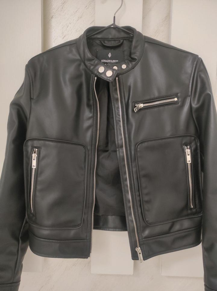 Куртка женская черная кожаная с карманами Артикул: 533341