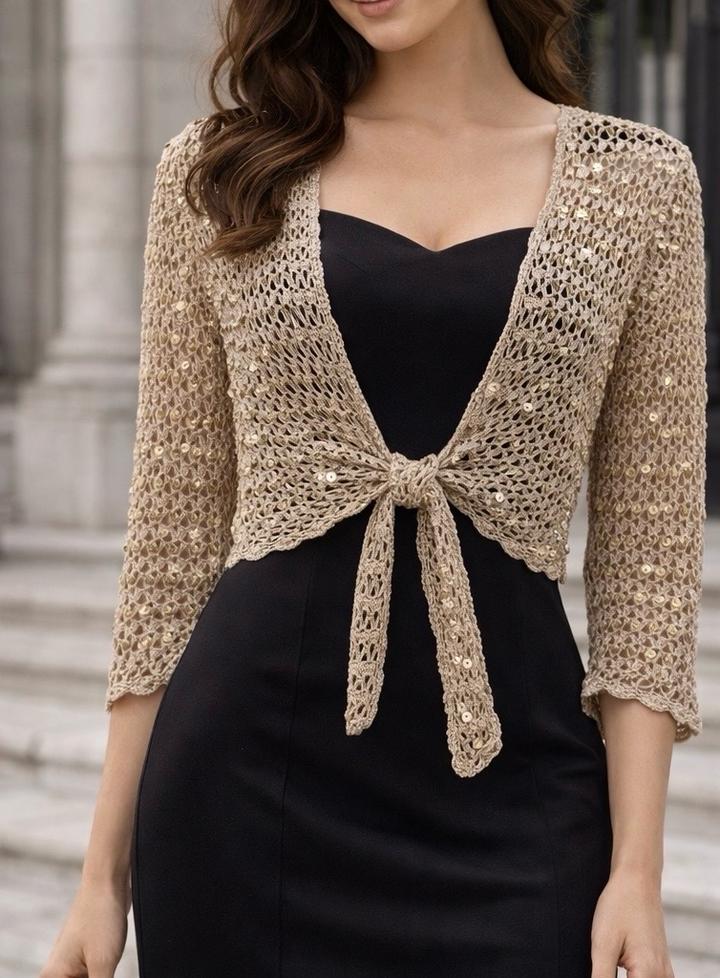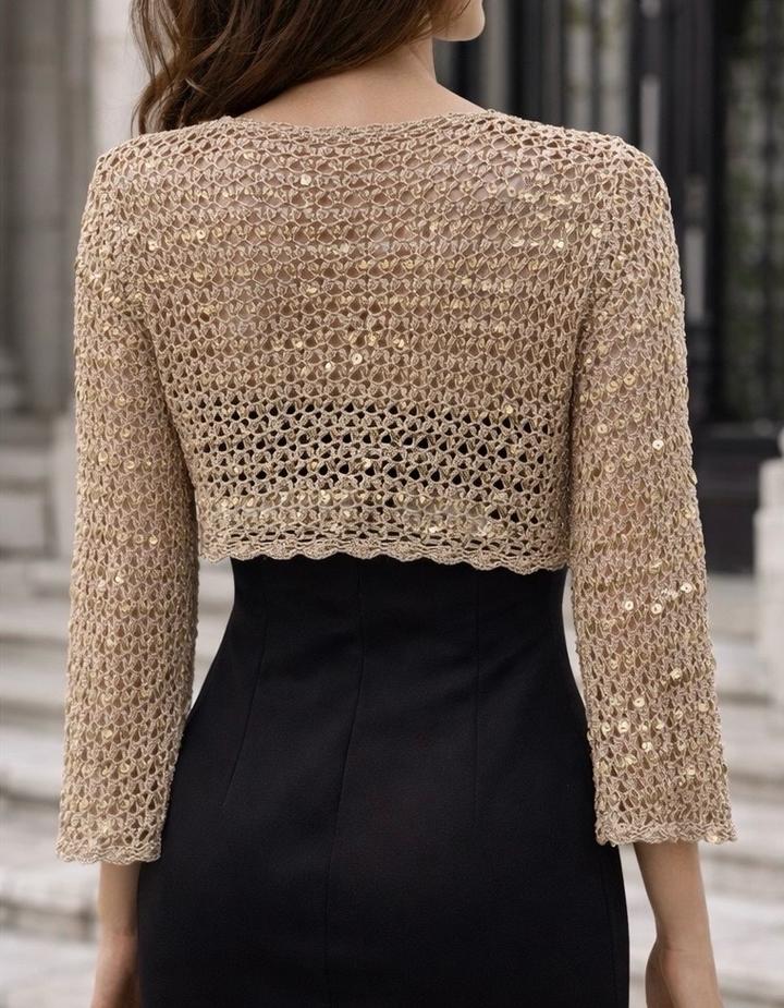 Ажурный короткий кардиган с пайеткамиM