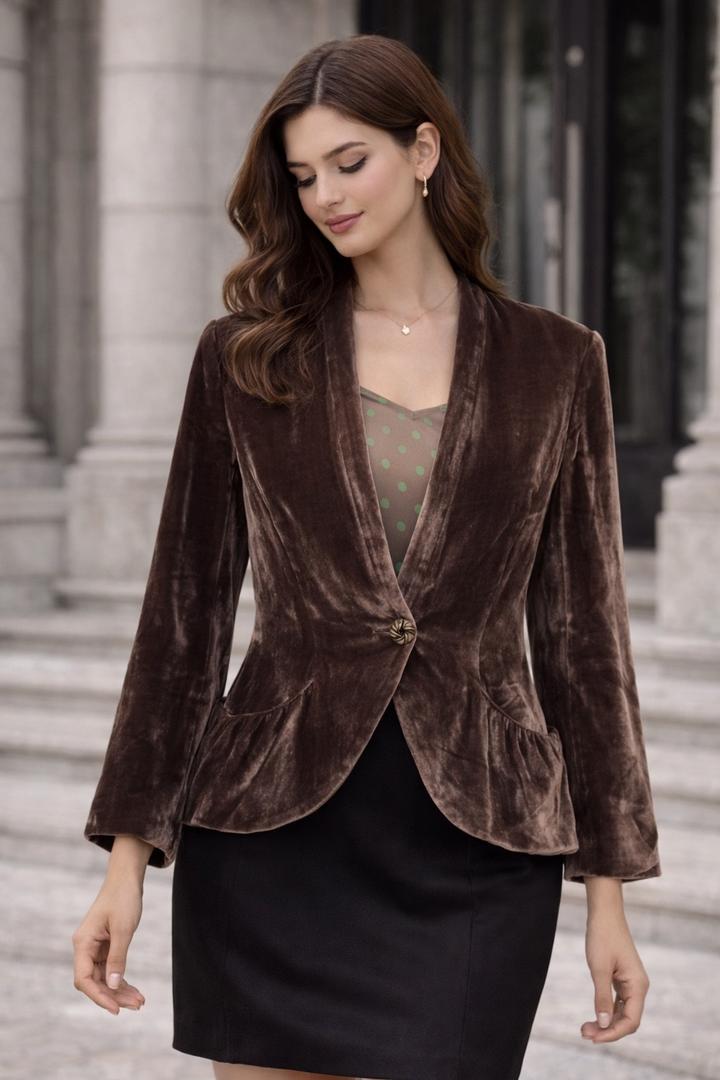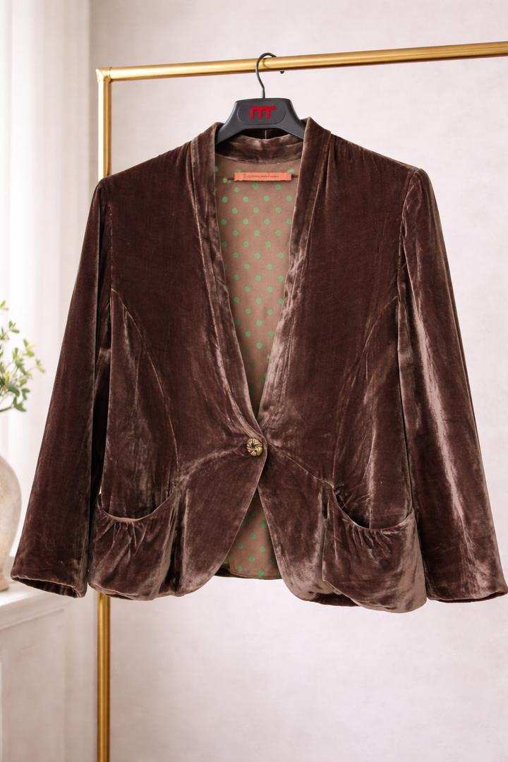 Элегантный бархатный жакет — благородный шоколадный оттенокS/M