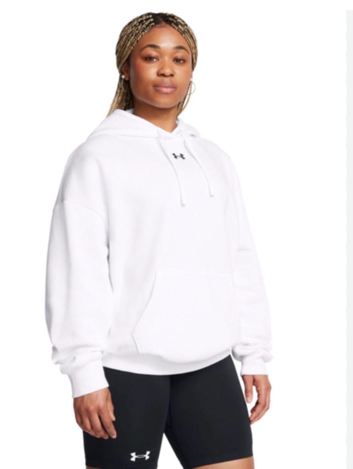 Это женская худи Under Armour серии Rival Fleece (или аналогичная модель Essential Fleece Oversized), отличающаяся свободным кроем, мягким флисовым материалом и минималистичным логотипом на груди.Крой: Оверсайз (свободный фасон) со спущенной линией плеча для комфортной посадкиДетали: Центральный логотип бренда на груди, передний карман-кенгуру, вшитый капюшон со шнурком для регулировки, а также ребристые манжеты и нижний край.Эта модель позиционируется как легкая и удобная одежда, подходящая как Артикул: 533586