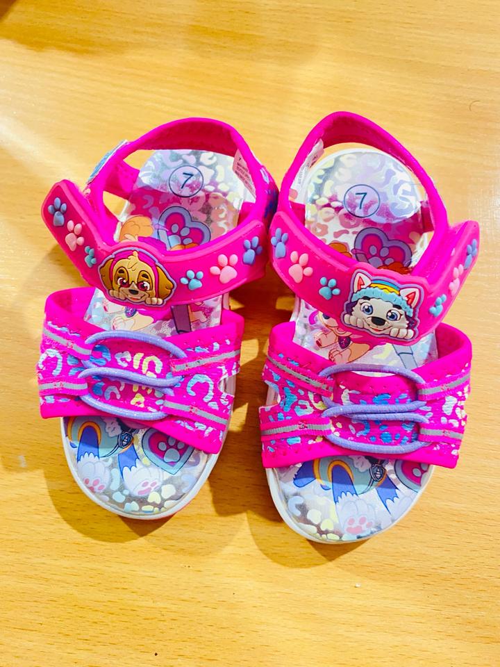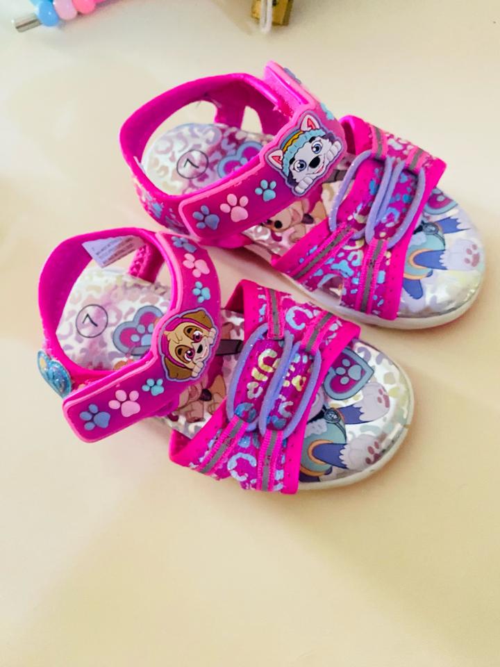 Куплено в Дубаи, сандали Щенячий патруль светятся при ходьбе на ремешки собачки, состояние новые, не ношеные размер не подошел. Размер 7, примерно 22,23,24 Артикул: 533593