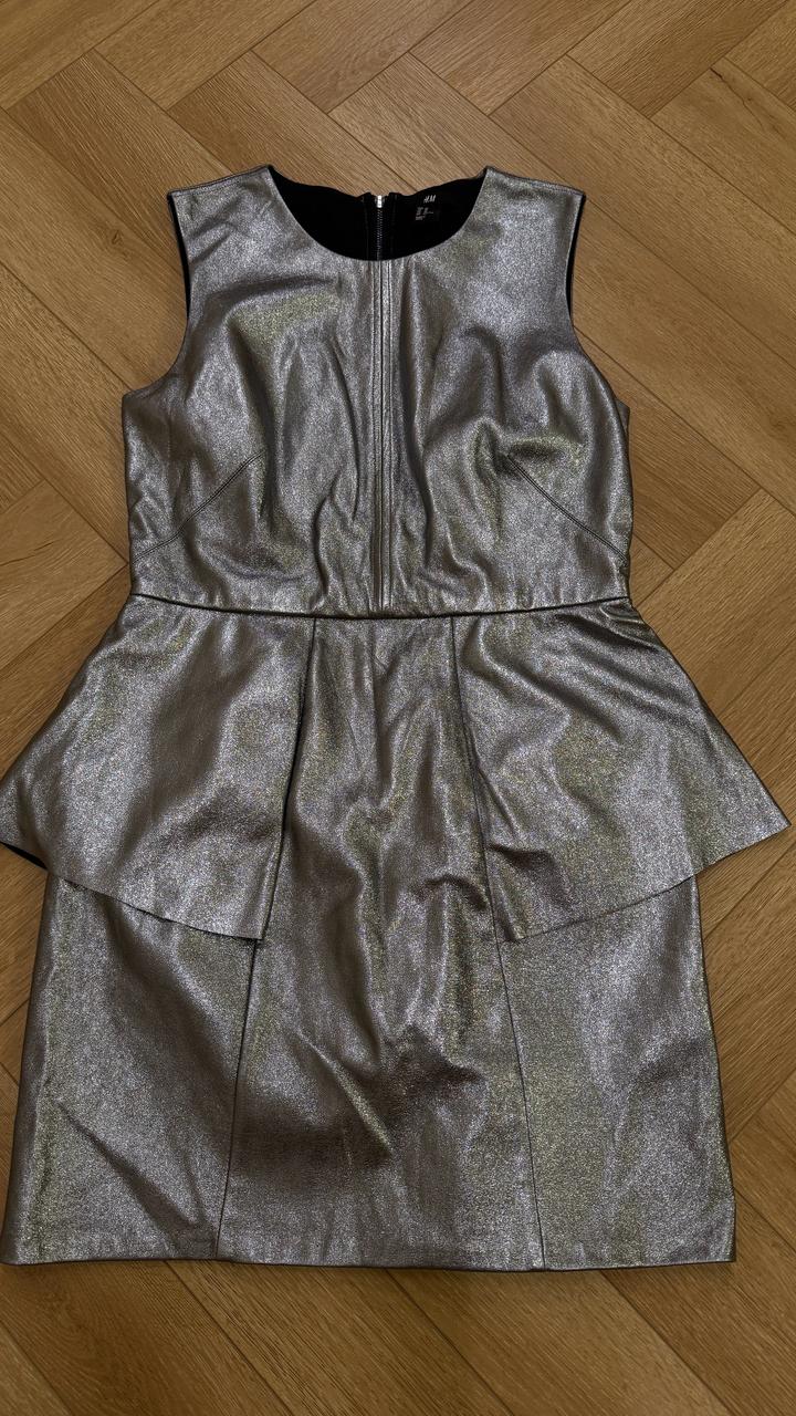 Кожанное платье с баской , в стальном цвете .в хорошем состоянии Артикул: 533634