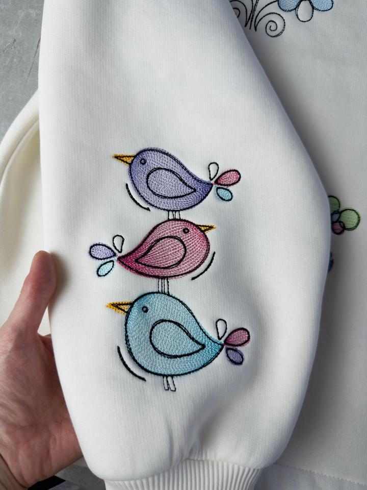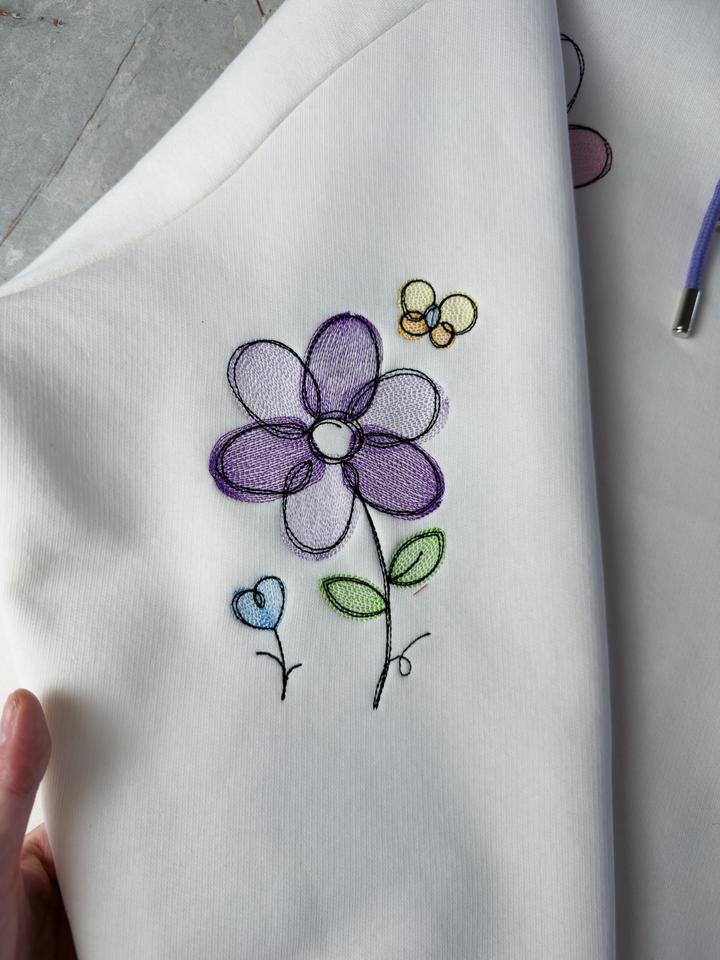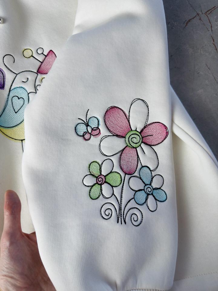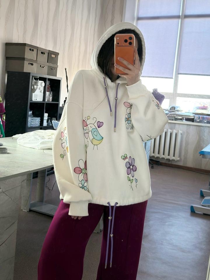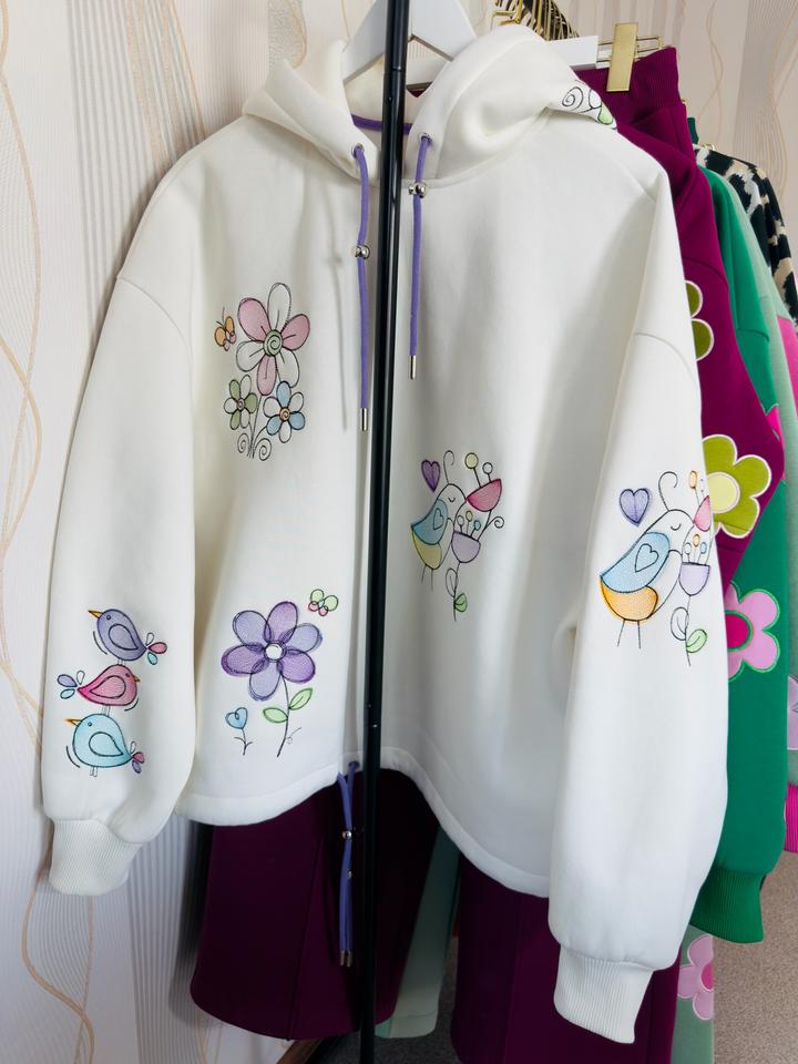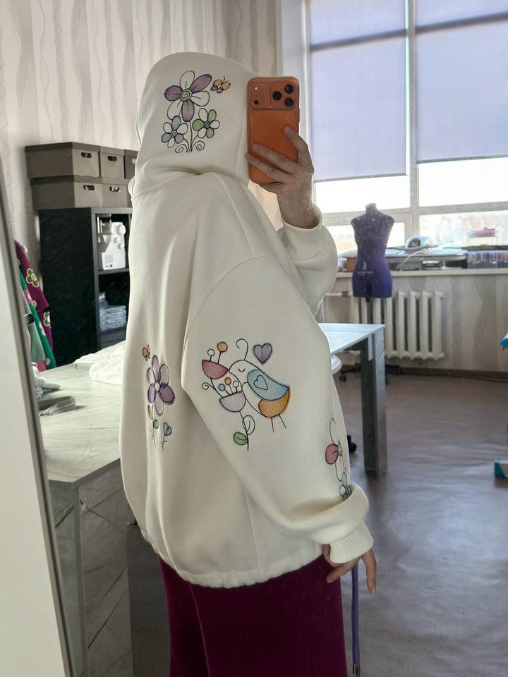 Худи с вышивкой, 12 вышивок в стиле детских рисуночков. Новый Обьем 130см Длина 65см Оверсайз По низу можно присобрать Артикул: 533676