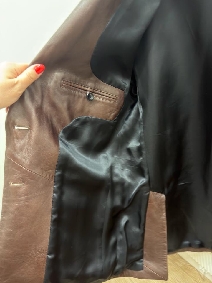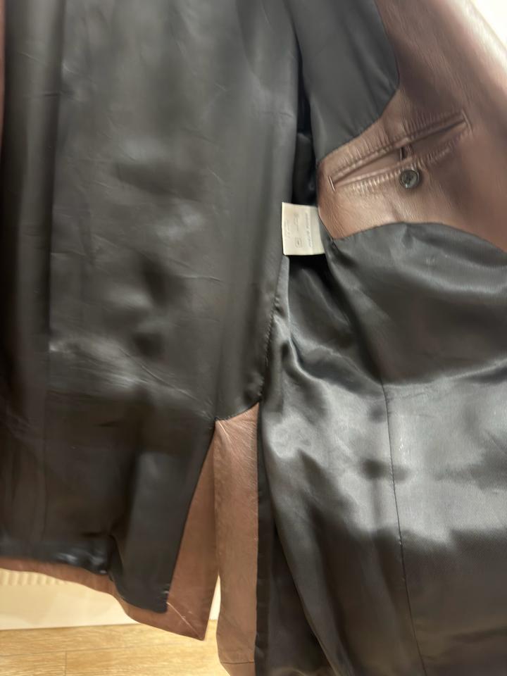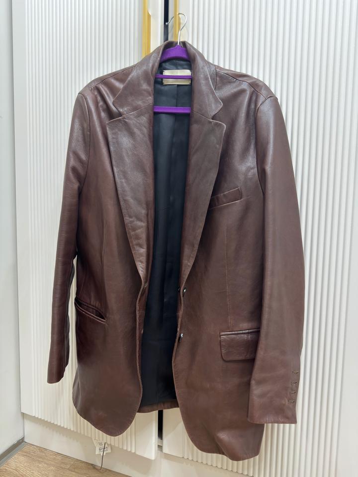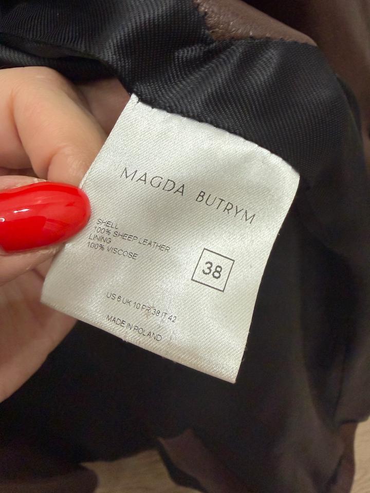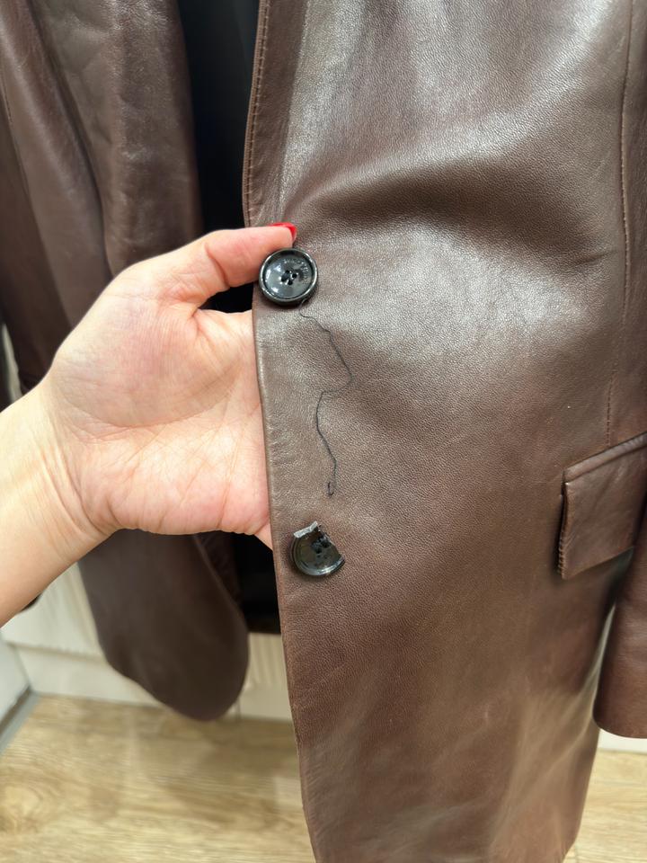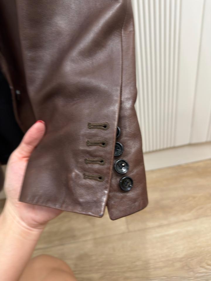 Продам пиджак кожанный фирмы Magda Butrym, покупался дорого, натуральная мягкая кожа, размер с-м, цвет шоколад, состояние очень хорошее только необходимо заменить пуговицу Артикул: 533710