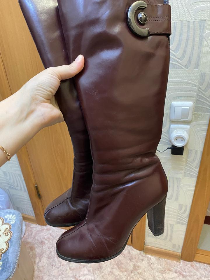 Зимние сапоги из кожи 38 размер Маломерят Густой мех Подойдут на 37 размер Высокий каблук Артикул: 533854