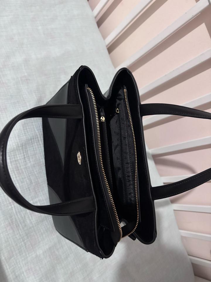 Сумка черная от Kari, классическая , стильная, красивая. Материал комбинирован из кожи и замша . В комплекте ремень. Артикул: 533883