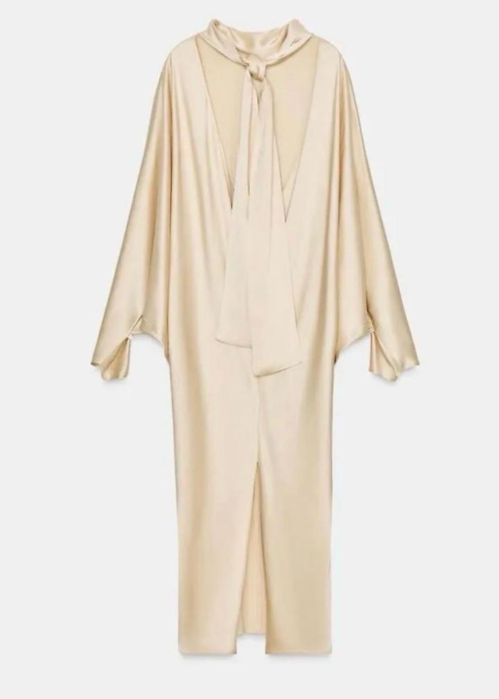 Элегентная туника из премиальной линейки Zara ZW Collection (Limited Edition) выполненная из гладкой атласной ткани с мягким благородным блеском. Высокий воротник подчёркивает утончённость, а струящиеся рукава-накидки добавляют образу эффектности и лёгкости. Разрез на спине с завязками и аккуратный разрез по низу делают силуэт более женственным и добавляет изящный акцент. Идеальный вариант для тех, кто хочет выглядеть выразительно и дорого без лишних усилий, стильных выходов и особых случаев. Артикул: 534024