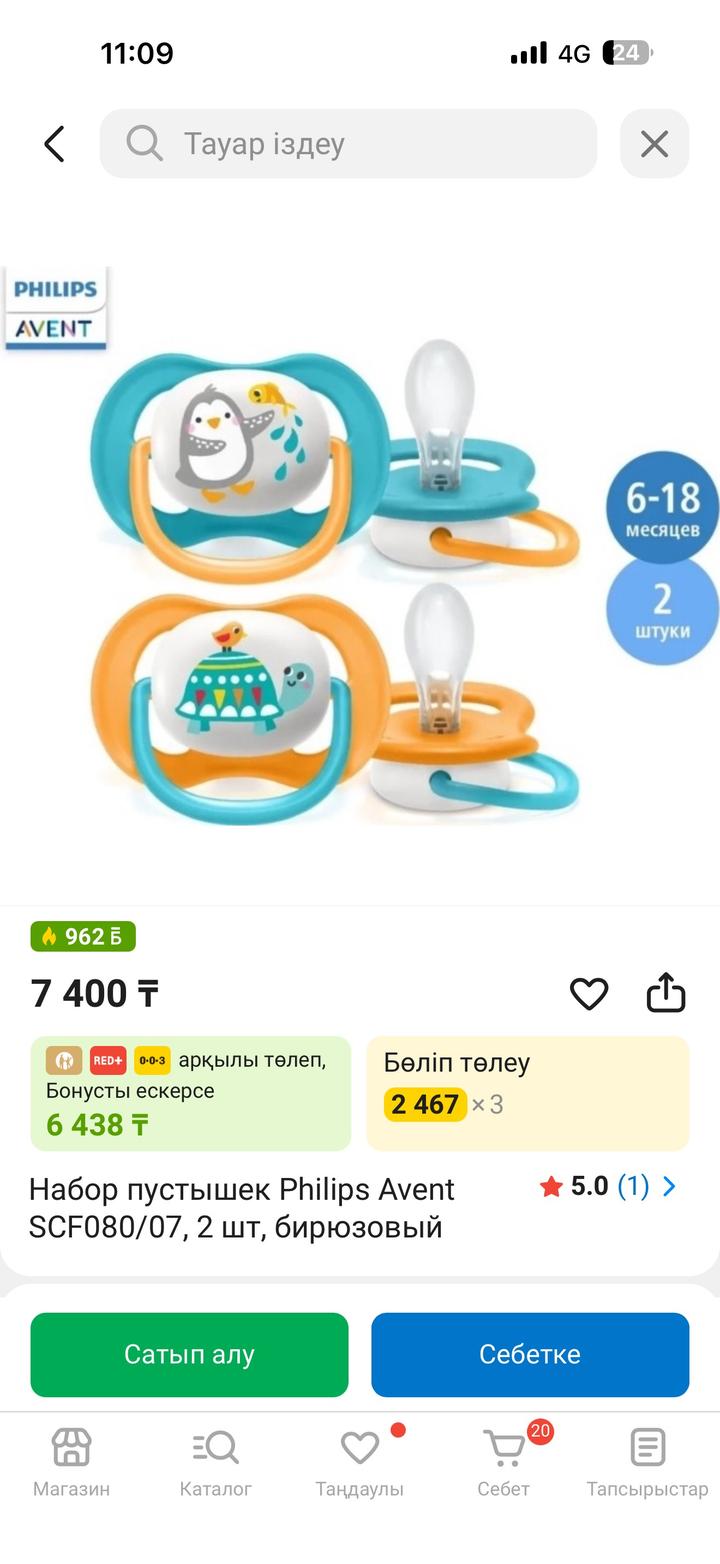 Купила заранее ребенку, он от пустышки впринципе отказался. У сеня есть другая пара пустышек Авент, которые давала попробовать. А эти абсалютно новые, поэтому можете быть спокойны. Идет в кейсе. Артикул: 534053