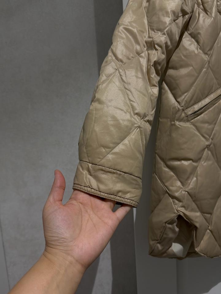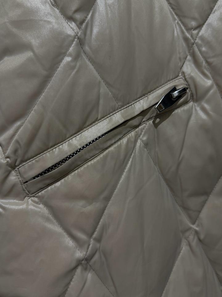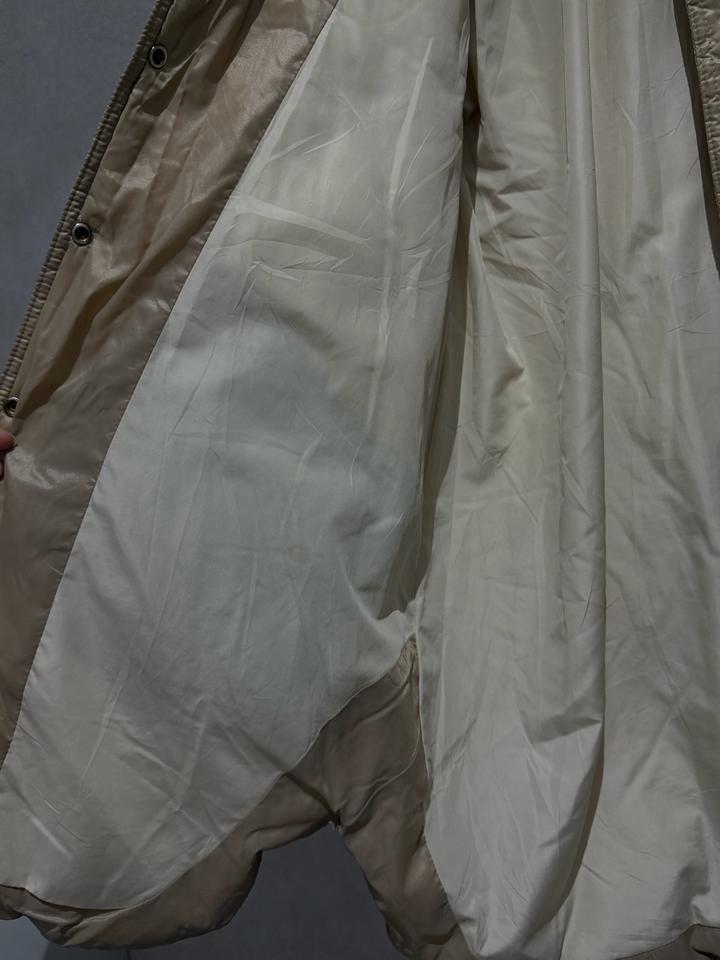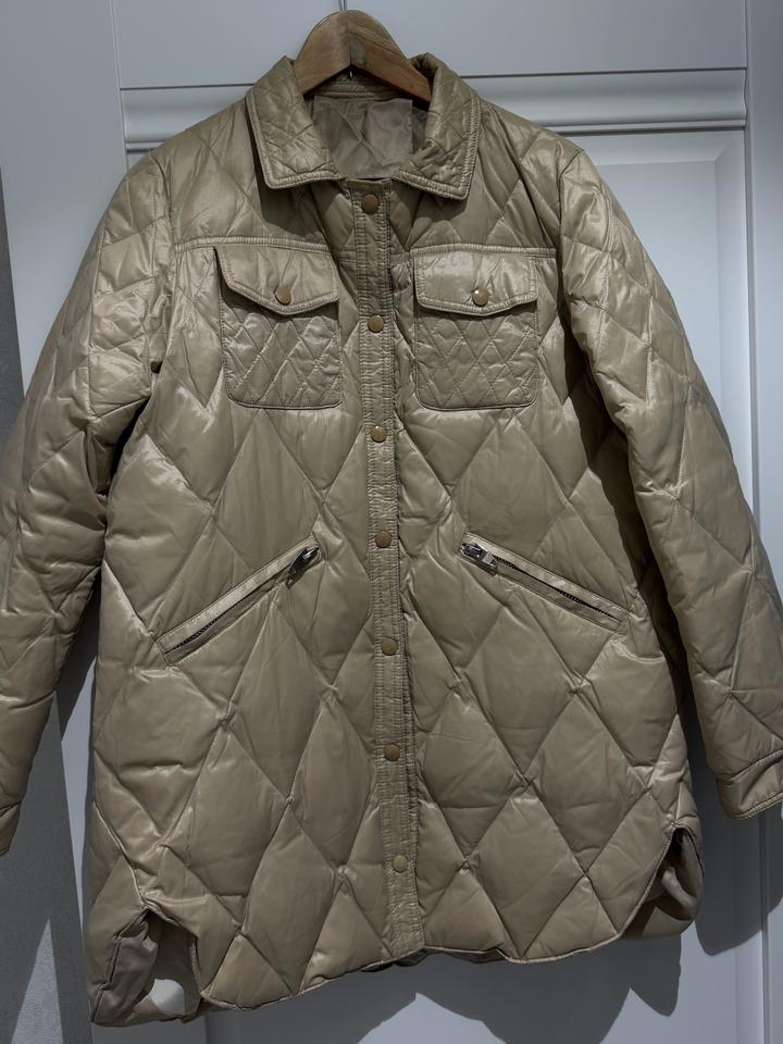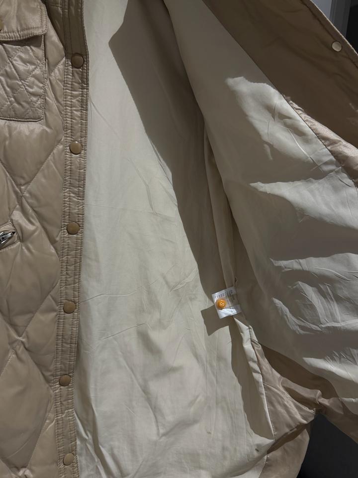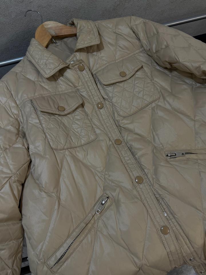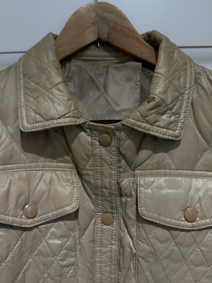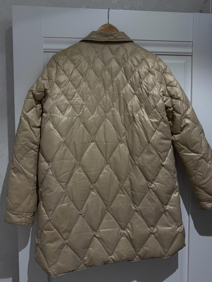Теплое простеганное пальто бежевого благородного цвета, на девочку размер 164, С-М детский размер. Очень стильное пальто. Шапка в подарок. Артикул: 534207
