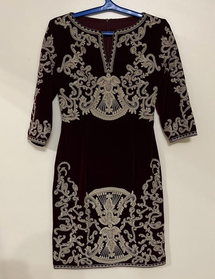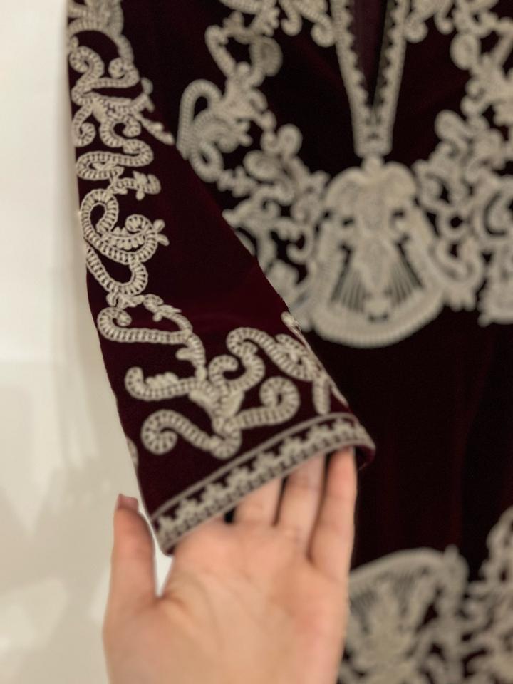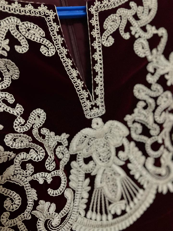 ✨ Әсем барқыт көйлек сатылымда ✨ Терең бордо түсті, алтын түстес кестемен безендірілген ерекше сәнді көйлек 🤍 Барқыт матасы жұмсақ әрі денеге әдемі отырады, фигураны нәзік айқындайды. ✔ Классикалық тік силуэт ✔ Жеңі 3/4 – өте ыңғайлы ✔ Кеуде және етек бөлігінде әдемі ұлттық өрнек ✔ Мерекелік кешке, тойға, қыз ұзатуға керемет таңдау Кигенде өте нәзік, жинақы әрі қымбат образ береді 💎 Стиль мен талғамды көрсететін ерекше модель ✨ Артикул: 534254