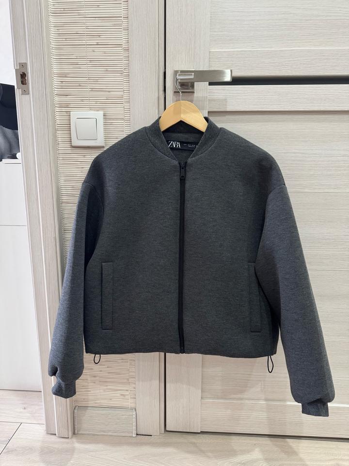 бомбер zara укороченный в хорошем состоянии, после чистки размер М, в плечах оверсайз низ на резинке, можно носить в 2 вариантах Артикул: 534543