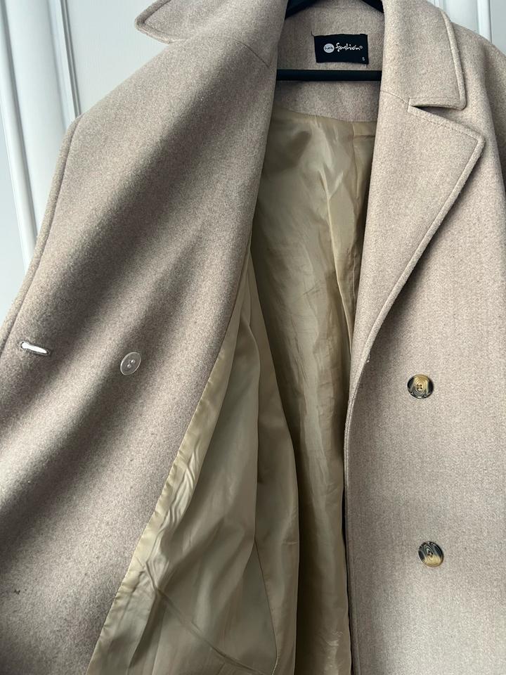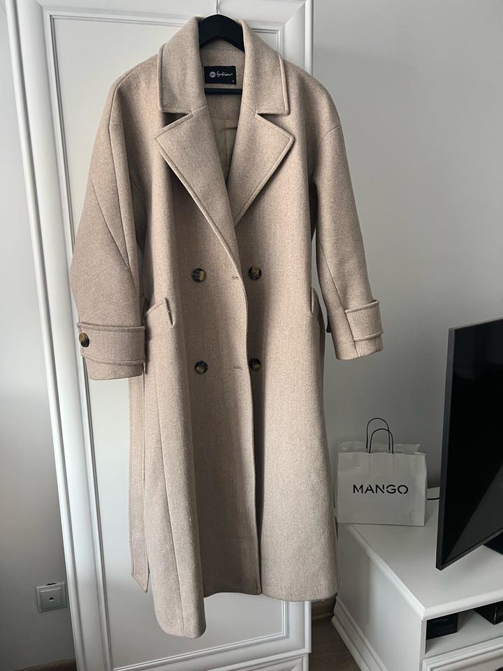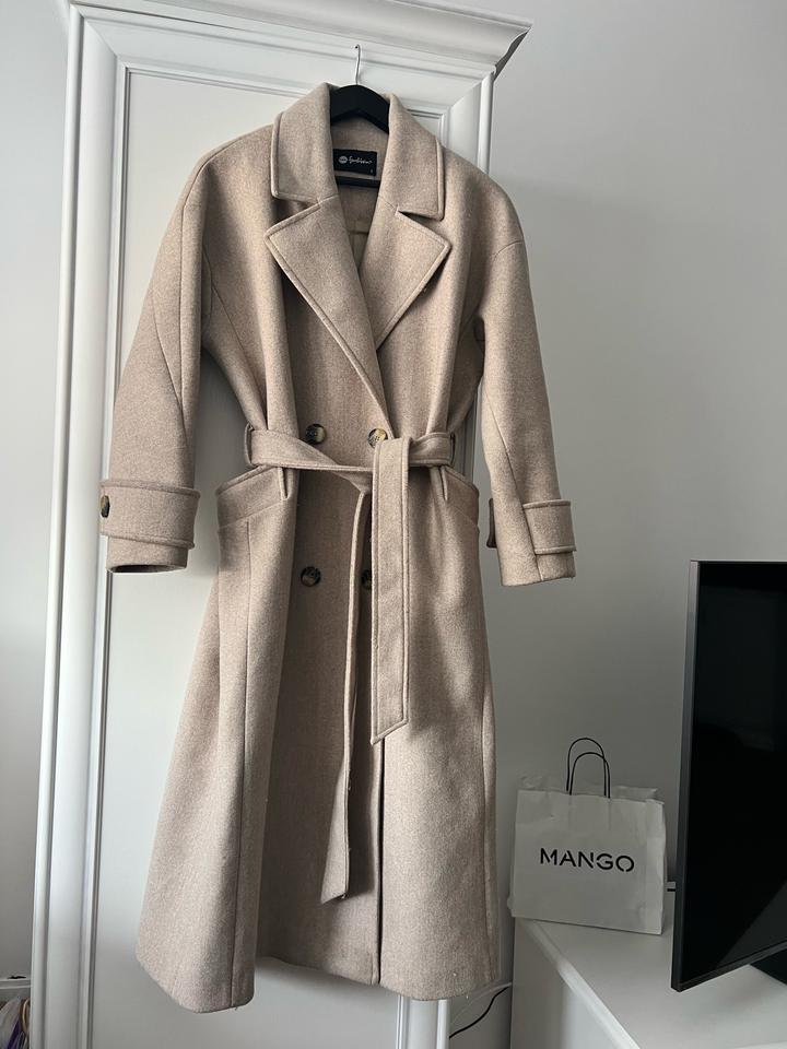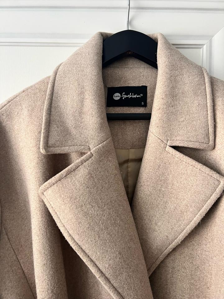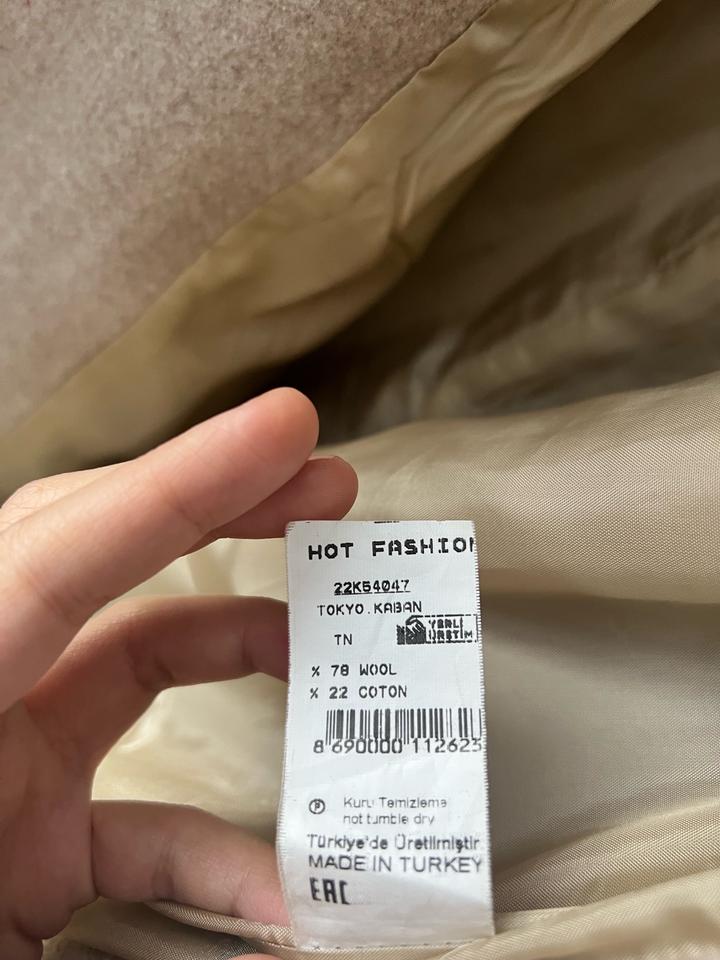 Турецкое пальто на размер М и Л подойдет, хотя написано на S. Не сильно плотное, но классно смотрится. Есть ремешок, не приталенное, как на фото оверсайз, но с ремешком прям идеально смотрится. Артикул: 534558