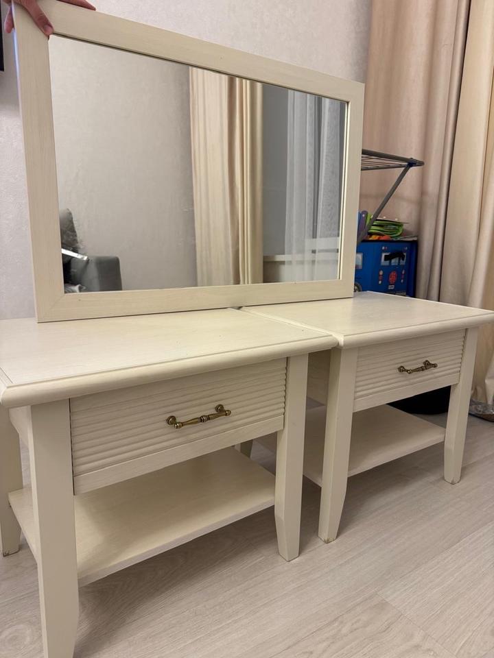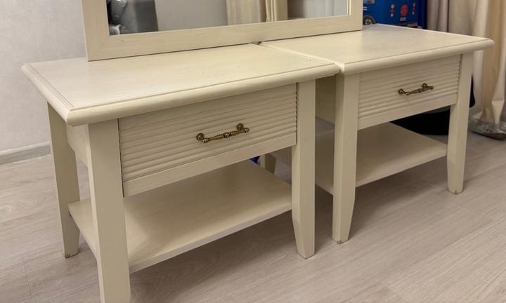 Продам тумбочки из натурального дерева. Две прикроватные тумбочки — крепкие, качественные и в хорошем состоянии. Стояли рядом с кроватью, аккуратно использовались. Зеркало уже продано. Цена за две тумбочки: 30 000 тг Отлично подойдут для спальни, добавят уюта и стиля Пишите в личные сообщения Артикул: 534677