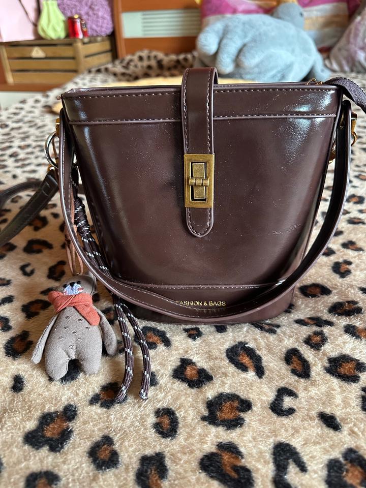 Милая сумочка с брелоком мишкой, цвета шоколад, размер примерно 26 на 18, небольшая, но очень вместительная, внутри есть дополнительный кармашек. А также, дополнительно длинный ремешок. Туда может поместиться и сотка и ваша косметика, и кошелек, вообщем она достаточно обьемная для женских штучек). Пекин Артикул: 534806