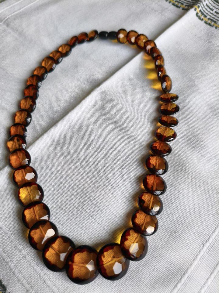 Уникальное винтажное колье из янтаря.Камни имеют коричневый оттенок,классифицируются как прозрачный янтарь ("кляр")с внутренней фасетной огранкой. Куплен на выставке в Таллине,изготовлен в единственном экземпляре. Покупали дорого Артикул: 534823