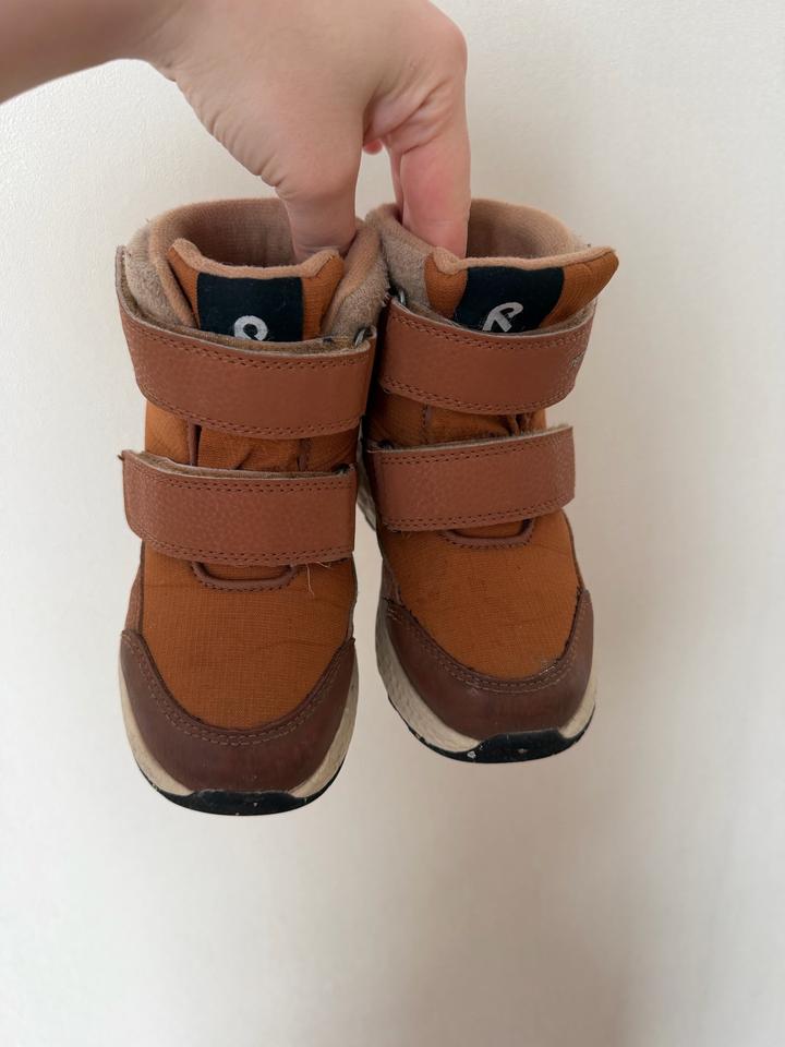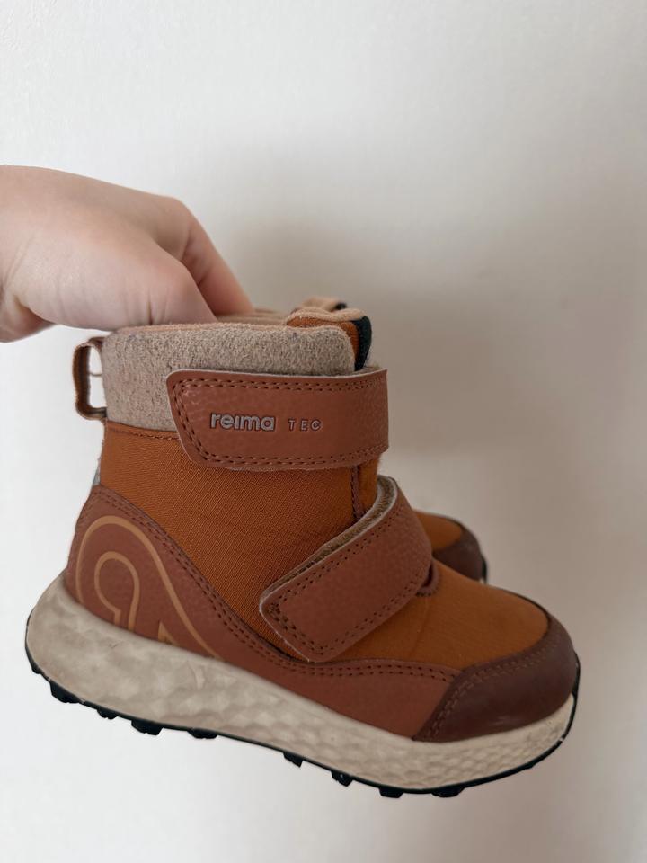 Зимние ботинки Reima оранжевого цвета. Размер 26, носили пару раз, в отличном состоянии. Водоотталкивающий материал, тёплые и удобные. Артикул: 534911
