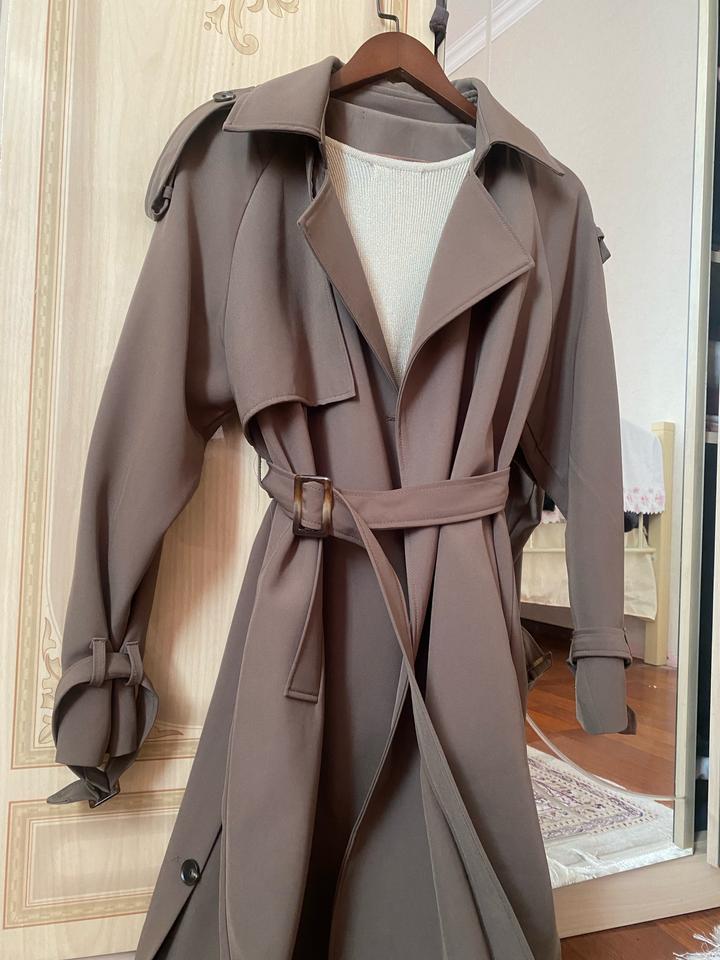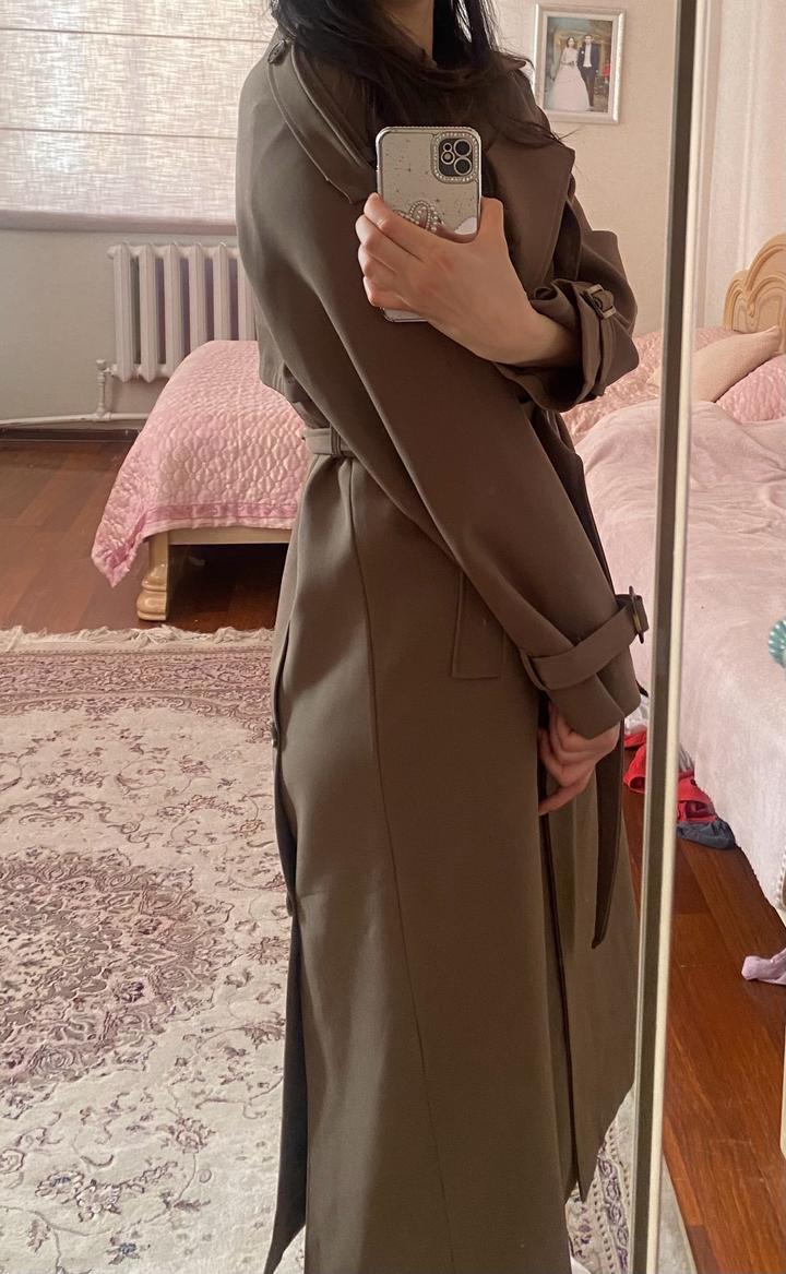 Тренч цвета хакки, весна-лето! Красивая на запах без пуговиц, с поясом! Длина миди на рост 170+Подойдет для SML Артикул: 534925