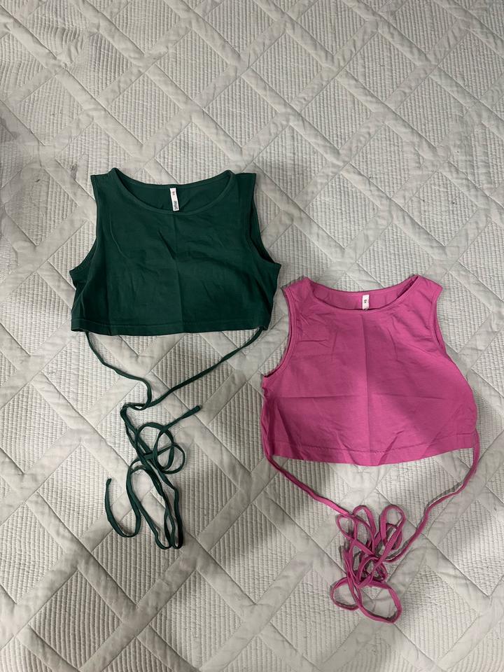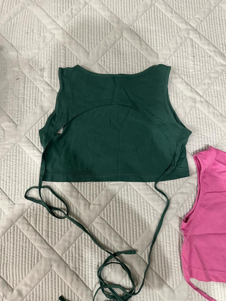 1) топ в рубчик новый, размер М, брала на вб; 2) два топа с открытой спиной на завязках befree, XS; 3) два топа-бандо, новые, без бирки, размер М, подойдут на S, брала на вб; 4) жилет temy, размер М, новый, без бирки, подойдет на S; 5) джемпер Zara, ткань акрил, с коротким рукавом, приятная ткань, серый цвет, чуть закаталась, размер S; 6) жилет с воротом Zara, трикотажный, темно серый, ткань чуть закаталась, размер S; 7) гетры черные, в рубчик, брала на вб Артикул: 535059