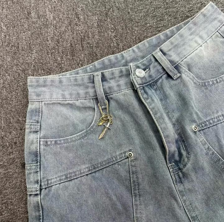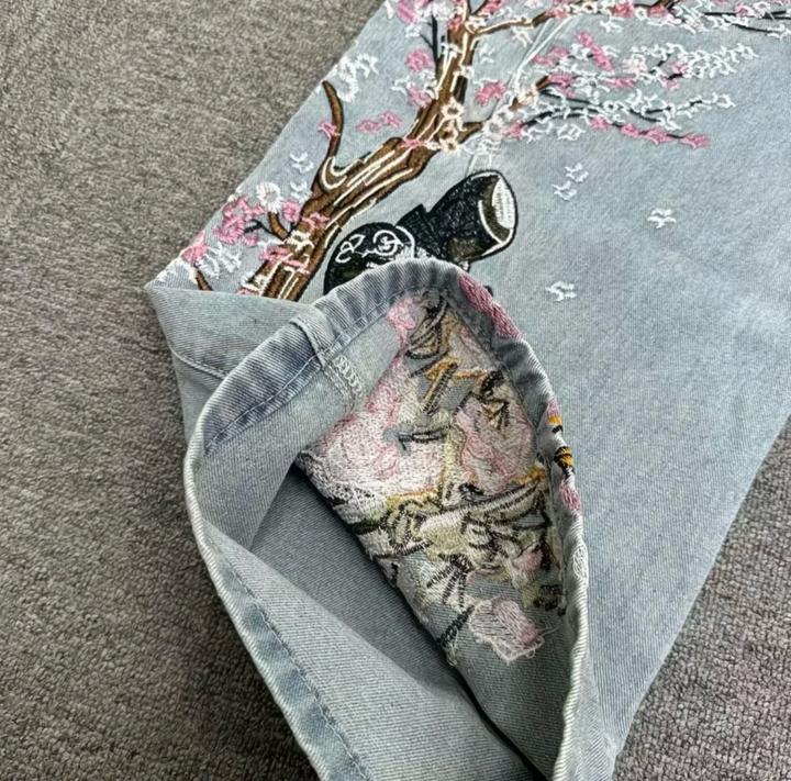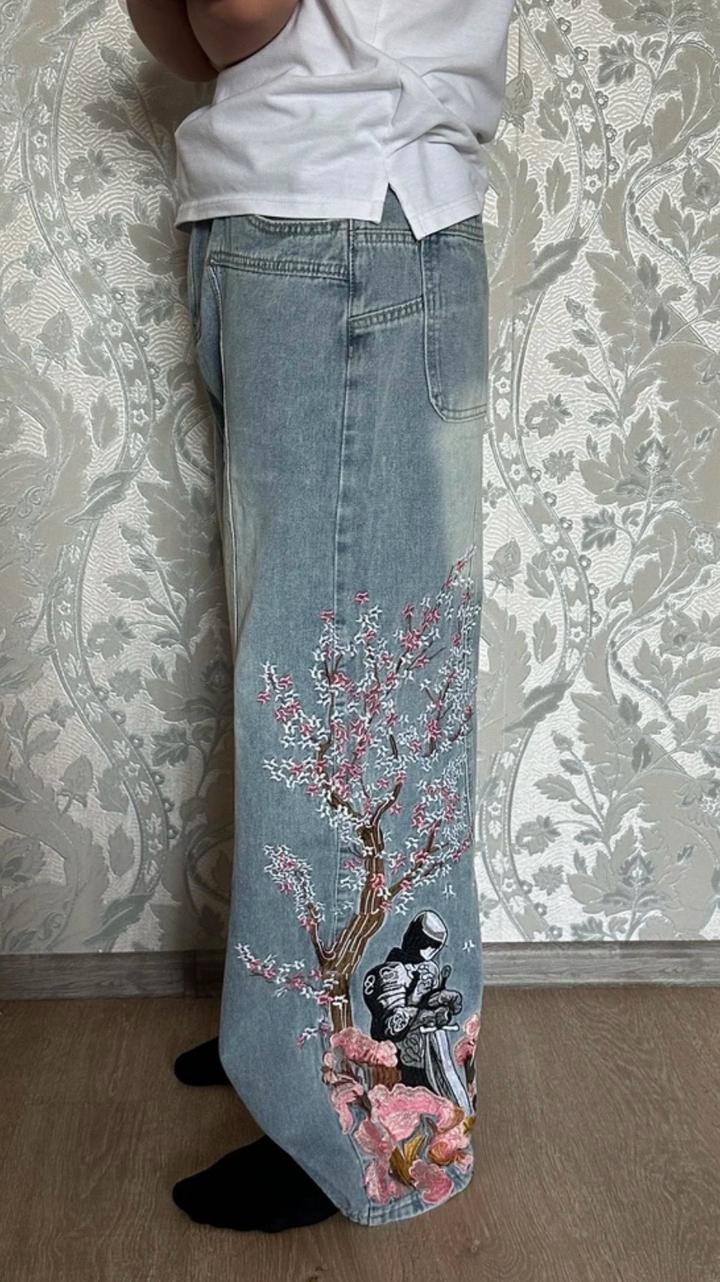 Эта модель,выполненная в светло-голубом цвете с эффектом потертости,имеет декоративные вставки спереди и сзади.На спине вышит рыцарь под цветущей сакурой,ветви которой переходят на переднюю панель.В комплекте кожаная бирка,металлический карабин в виде меча и более 1 000 000 стежков. Вышивка <<Рыцарь и Сакура>> Светло-голубой джинсовый материал с эффектом потертости Дизайн декаротивных вставок Карабин в виде меча с гравировкой <<VSCRTS>> Свободный крой 100%органичнский хлопок 14 унций Артикул: 535295