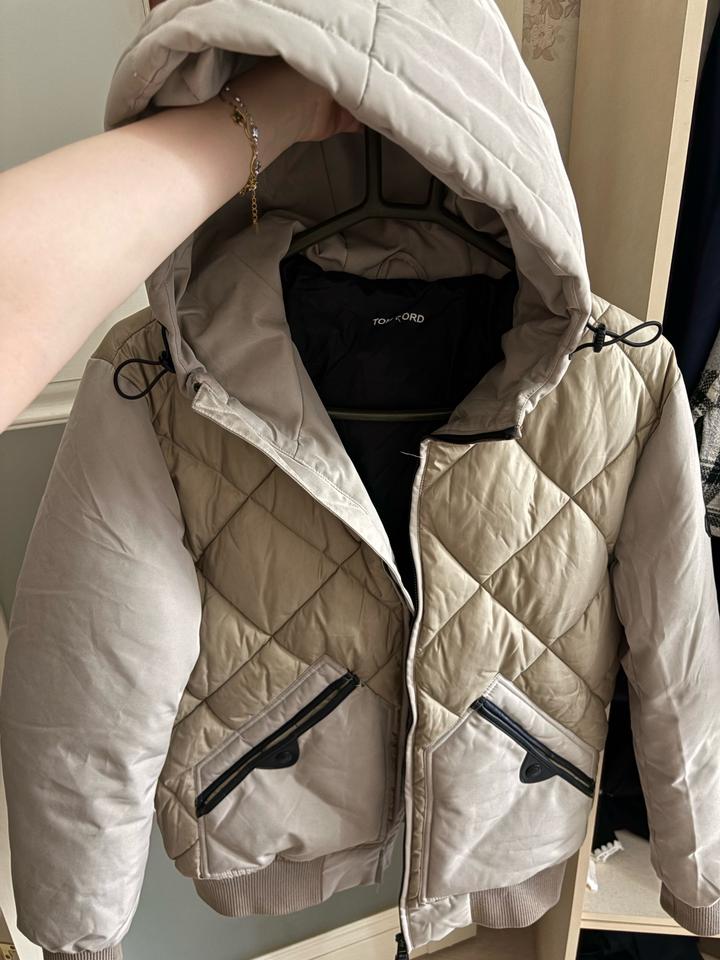 Куртка (Tom Ford) Стильная утеплённая куртка Tom Ford идеальный вариант демисезон Состояние: отличное, аккуратно носилась Цвет: универсальный бежевый подходит под всё Дизайн: стёганый, с капюшоном, выглядит дорого и минималистично Удобство: лёгкая, но тёплая, не сковывает движения Детали: качественная фурнитура, продуманные карманы Подойдёт как под casual, так и под более строгий стиль Артикул: 535332