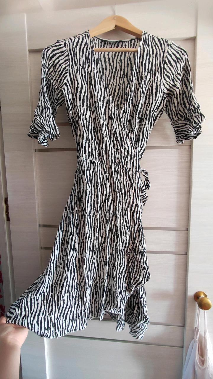 Пляжное платье-накидка с анималистичным принтом зебры на запах с поясом LCWaikiki Артикул: 536224