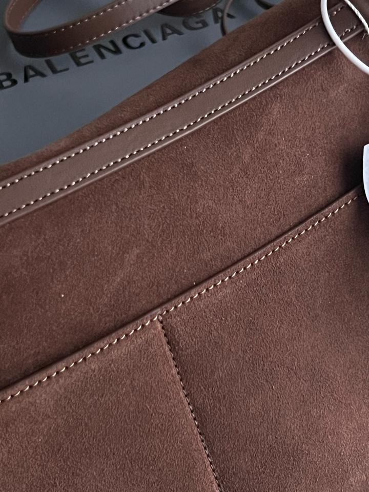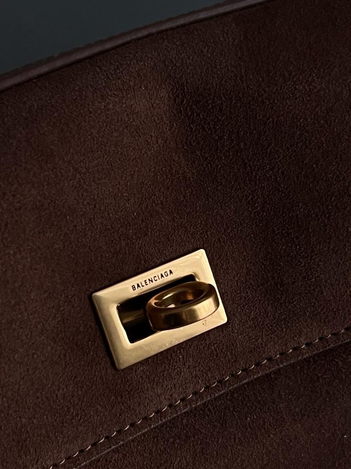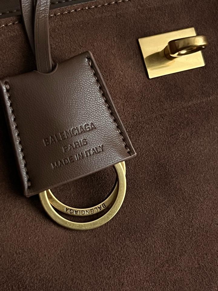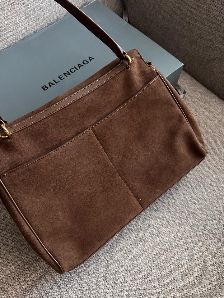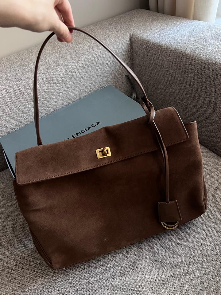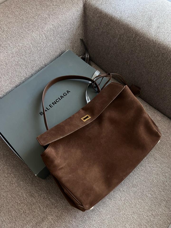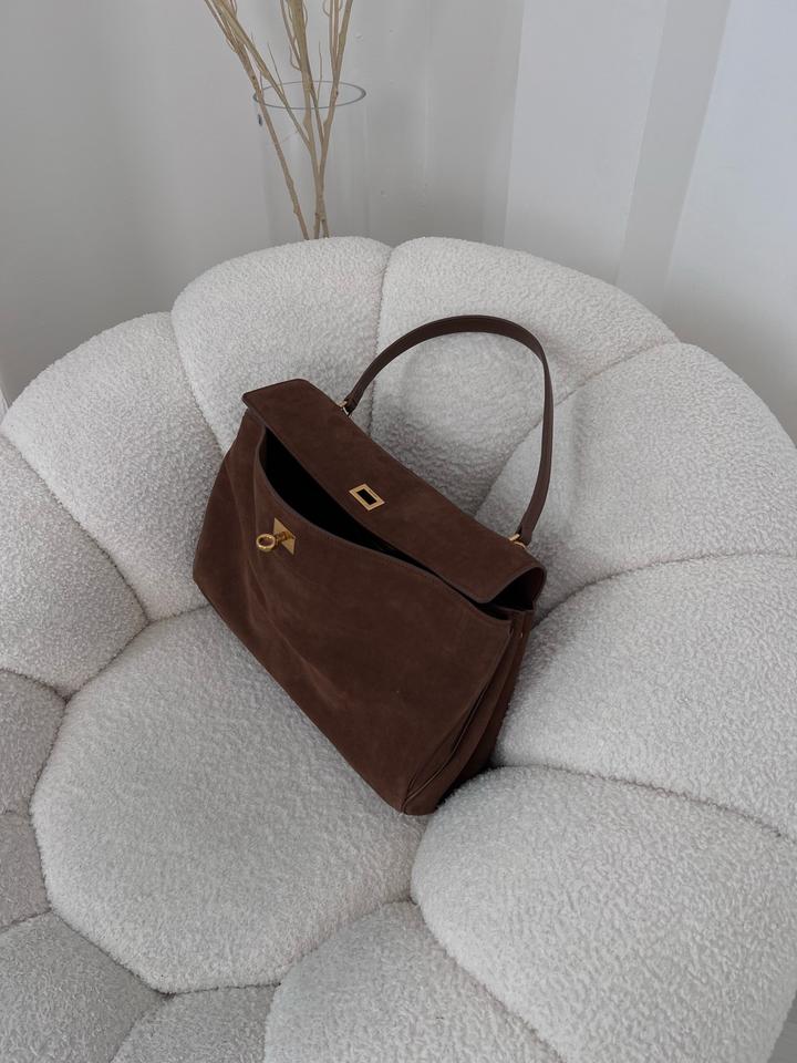 Удобная и трендовая сумка из замши в комбинации с натуральной теляьчей кожей. Внутренняя отделка полностью из кожи с несколькими отделениями. Насыщенный богатый шоколадный цвет. Новая в коробке. Артикул: 536271