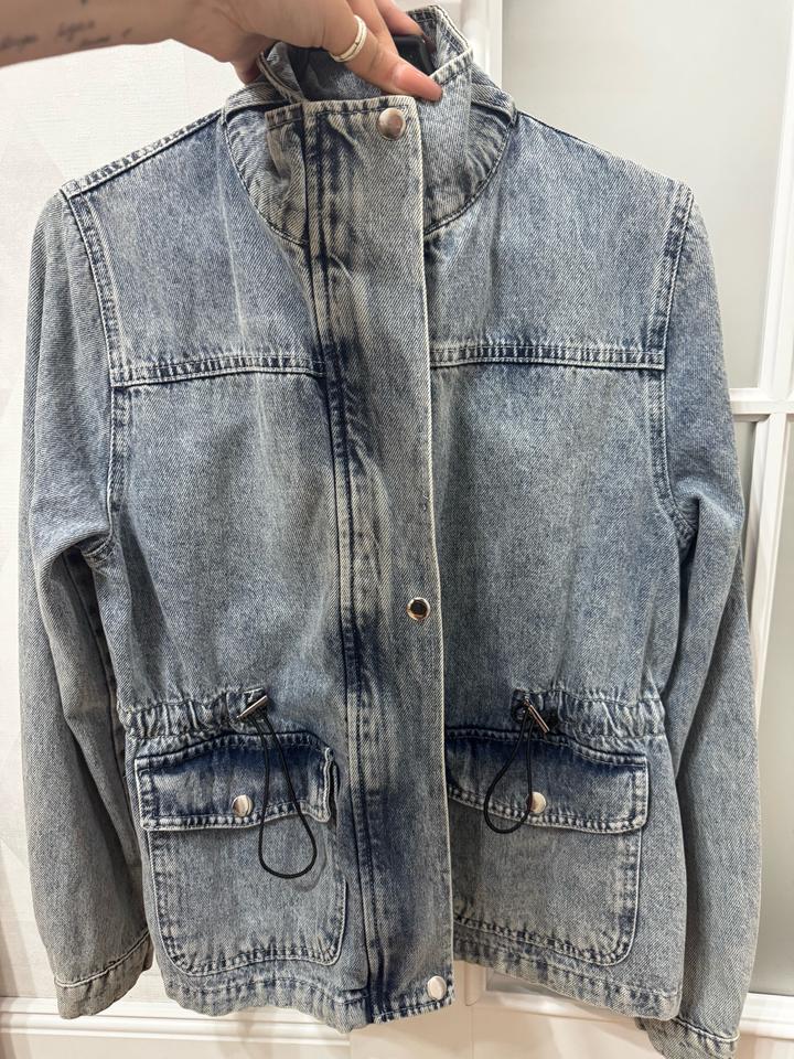 В идеальном состоянии. Джинса хорошего качества. Плотная, добротная. Пуговички все также в хорошем состоянии. Смотрится супер. Есть затяжки. Размер - S Артикул: 536273