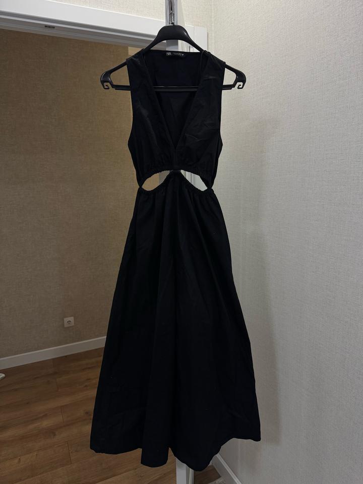 Полностью хлопковый сарафан - платье Черный Спина приоткрыта, сбоку карманы Низ широкий как трапеция Очень женственно, красиво, силуэтно Размер С, на рост 160-165-170 Состояние отличное Артикул: 536290
