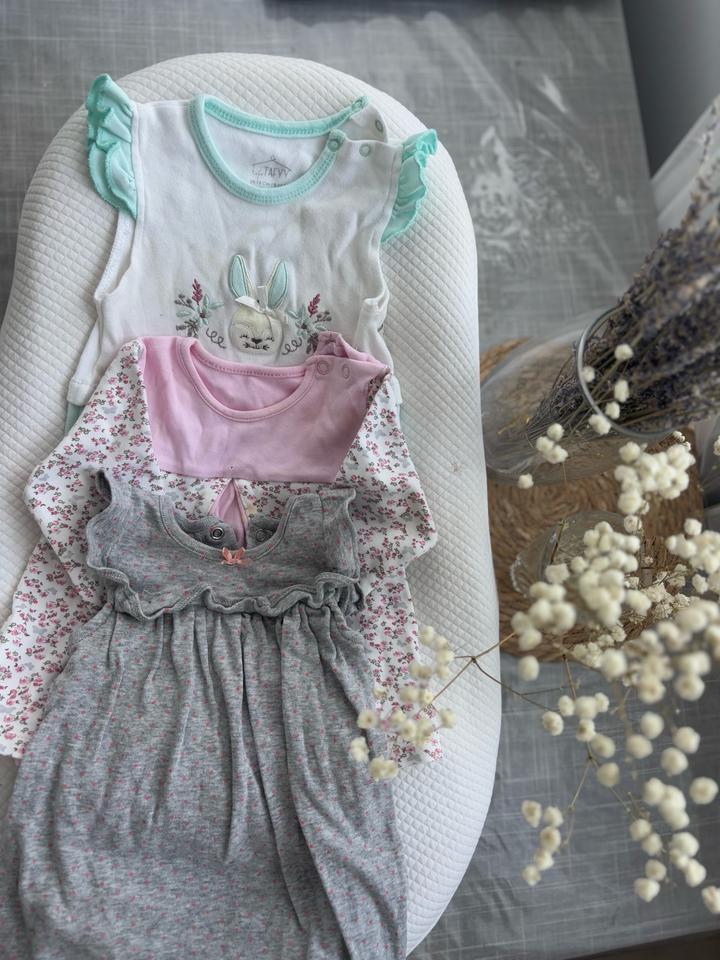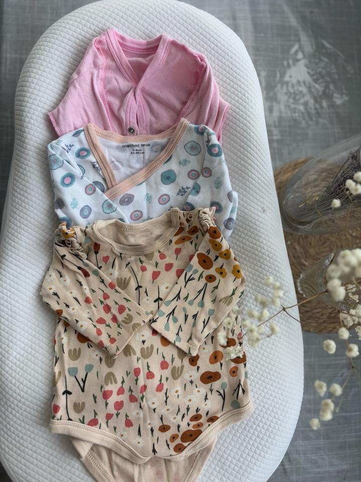 Детская одежда в отличном состоянии есть на девочку и мальчика слипы , Боди, шапки, футболки, ползунки, штанишки , комплекты , костюмчики размеры 56-62-68 на фото не все Артикул: 536314