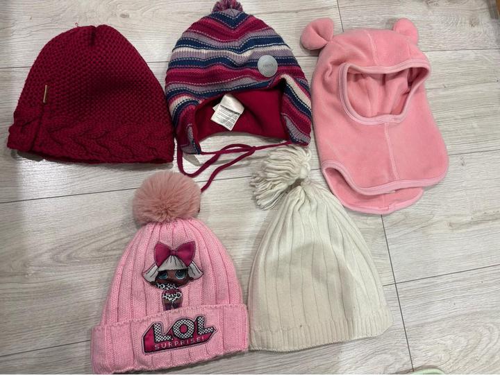 Шапка на флисе LOL MGA 1000, Reima шерстяные на флисе фиолетовая и полосатая 52 по 2000 каждая, белая шапка Польша из шерсти мериноса на флисе 1000, капор шлем розовый на двойном флисе 1000 Артикул: 536353