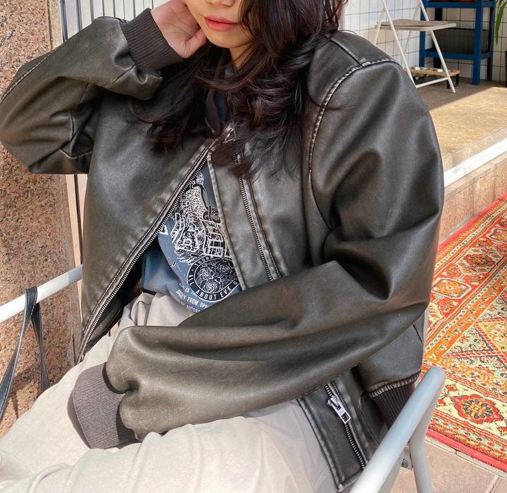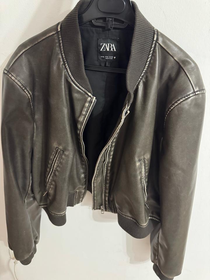 Кожаный бомбер Zara. Эко-кожа, размер XL Артикул: 536440