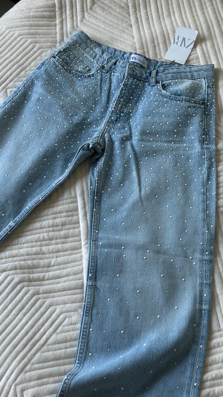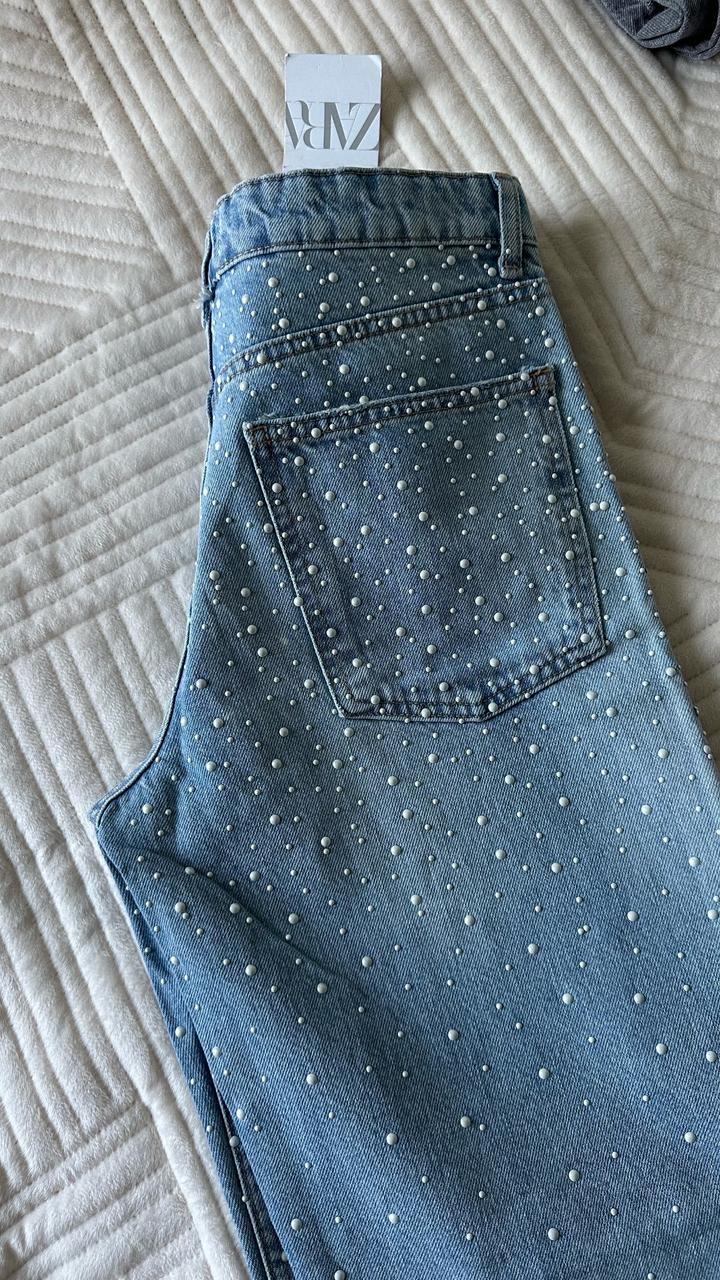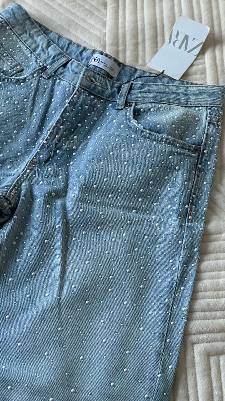 Роскошные красивые джинсы Зара Абсолютно новые Полностью в жемчугах, среди и сзади, на штанине тоже. Все жемчужины на месте, очень качественные Заказала лимитки с Португалии но мне малы Девочки они просто обалденные 😭 Посадка средняя Размер на С-М Артикул: 536463