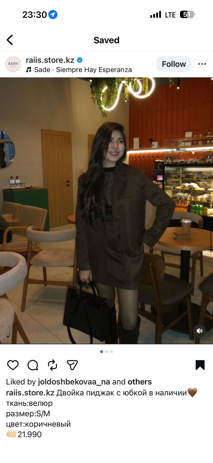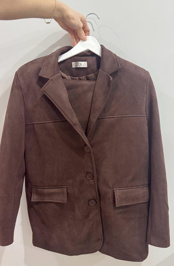Коричневая двойка из материала велюр .В отличном состоянии.Надевала 2 раза .Покупала за 21.990 Артикул: 536538