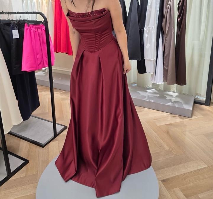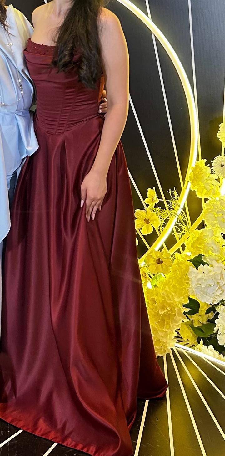 Атласное бордовое корсетное платье из шоурума Embark в Астане. Размер М, на фото рост 165 на каблуках. На выпускной самое то Артикул: 536548