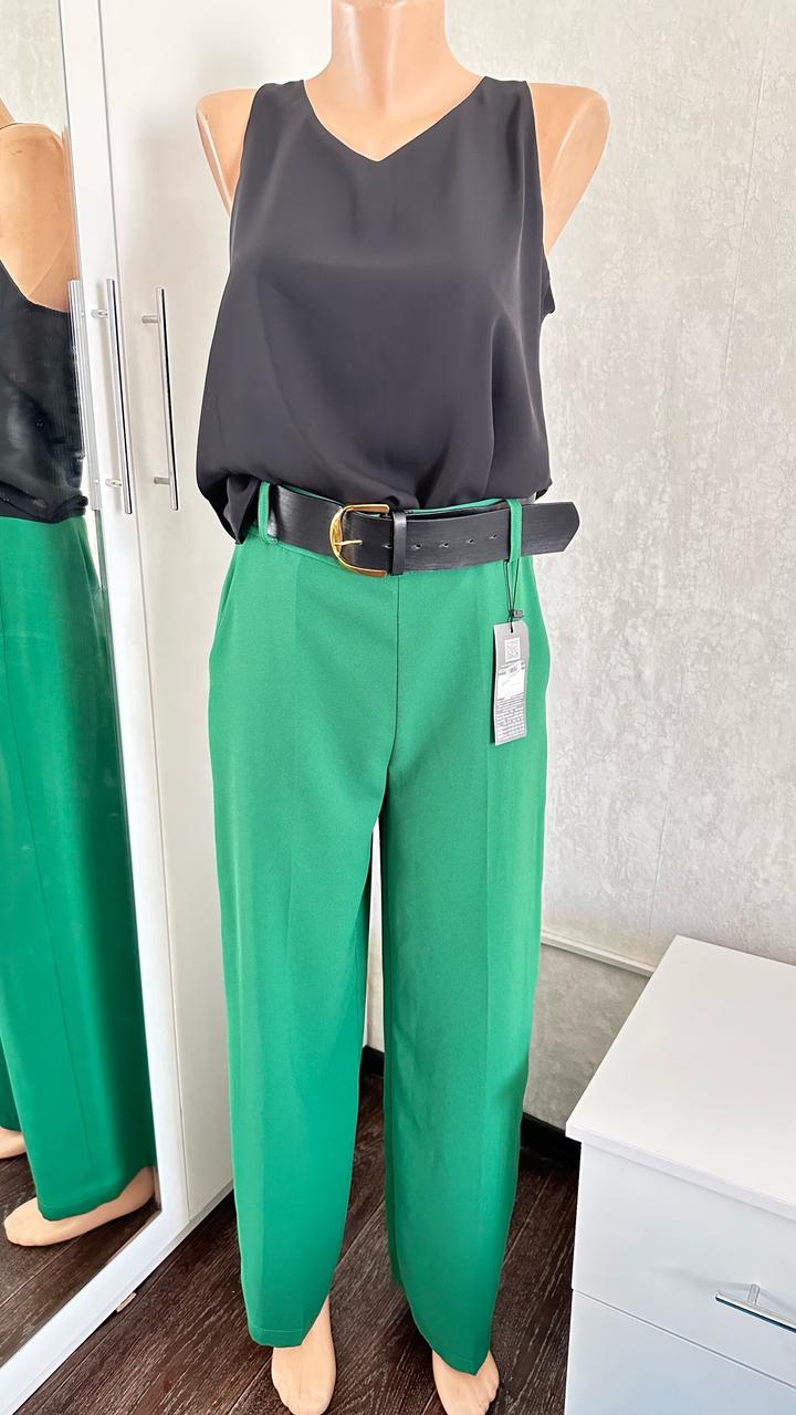 Зелёные классические брюки прямого кроя с высокой посадкой. Лёгкая ткань, аккуратный силуэт — идеально подходят для офиса и повседневных стильных образов. Артикул: 536564