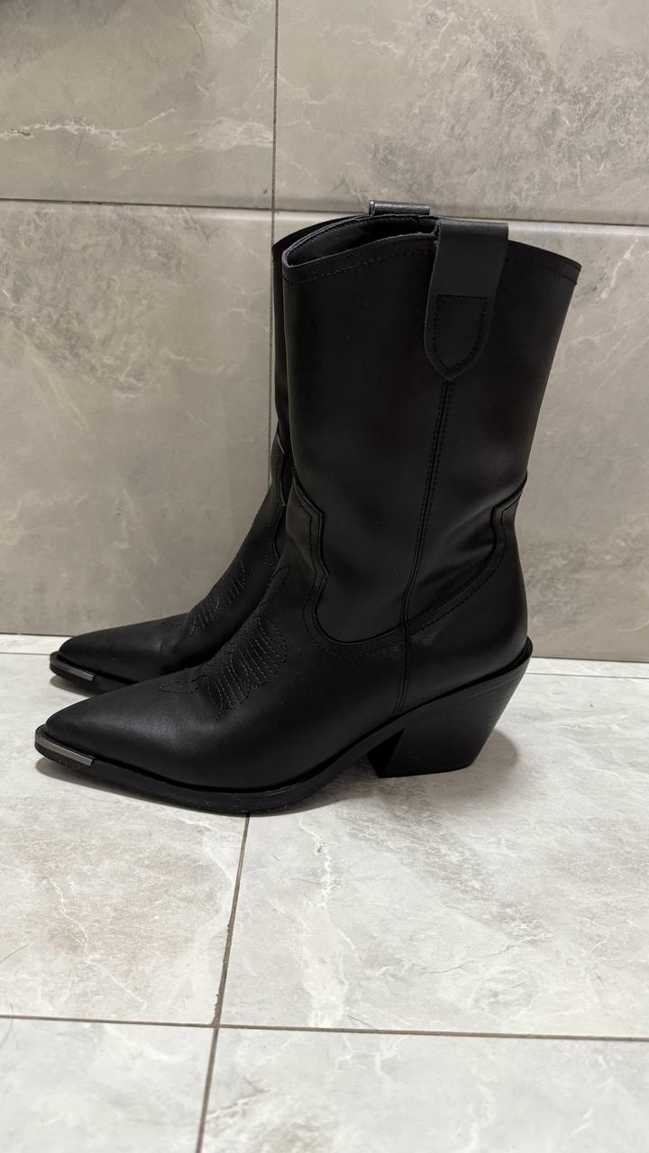👢 стильные казачки из натуральной кожи В отличном состоянии, аккуратно носились 👍 Очень удобные и выглядят дорого. ✔️ Натуральная кожа ✔️ Модный фасон казачков ✔️ Острый нос ✔️ Тёплые внутри — подойдут на осень/зиму ✔️ Универсальный чёрный цвет Отлично смотрятся с джинсами, платьями и пальто 🖤 📏 Размер: 40 Артикул: 536595