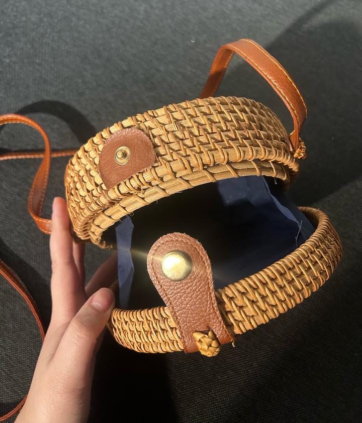Плетеная сумка из ротанга. Материал подкладки: хлопок Можно носить на плечо, через плечо Длина плечевого ремня 57 см Покупалось во Вьетнаме. Ручная работа. Но так и не пользовались. Артикул: 536613