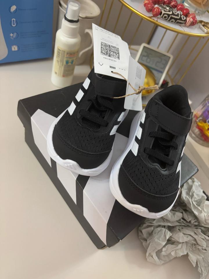 Детские кроссовки от бренда Адидас.Оригинал. Новые,с этикеткой. Размер 20. Заказывала через интернет,с размером ошиблась,нам оказались малы. Артикул: 536615