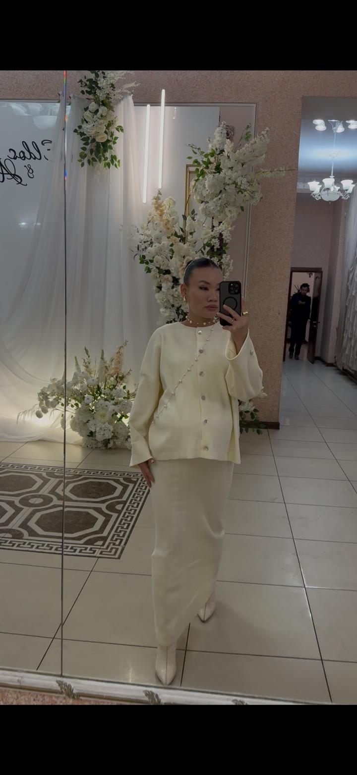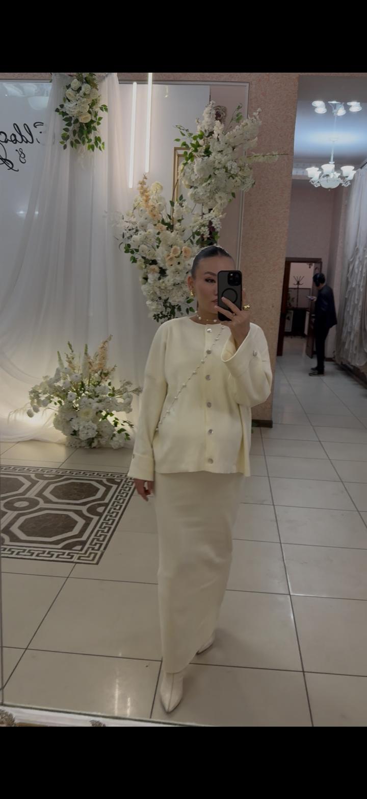 🤍 Элегантный костюм (тройка) В отличном состоянии, надевался аккуратно 👍 Смотрится очень дорого и женственно. ✔️ Жакет + юбка + топ ✔️ Нежный молочный оттенок ✔️ Лаконичный и стильный фасон ✔️ Подчёркивает фигуру ✔️ Идеально на мероприятия, свадьбу, фотосессии Готовый образ — ничего дополнительно подбирать не нужно ✨ Артикул: 536680