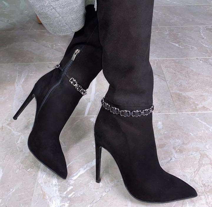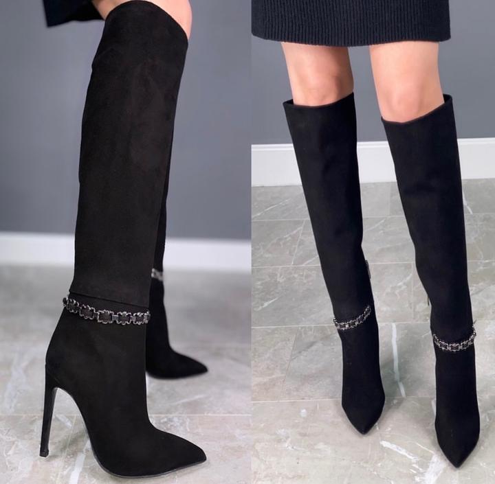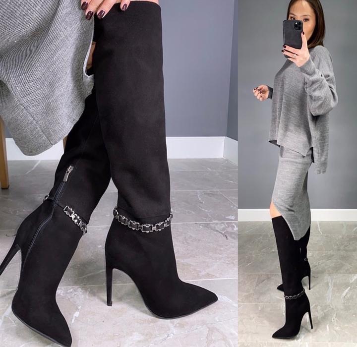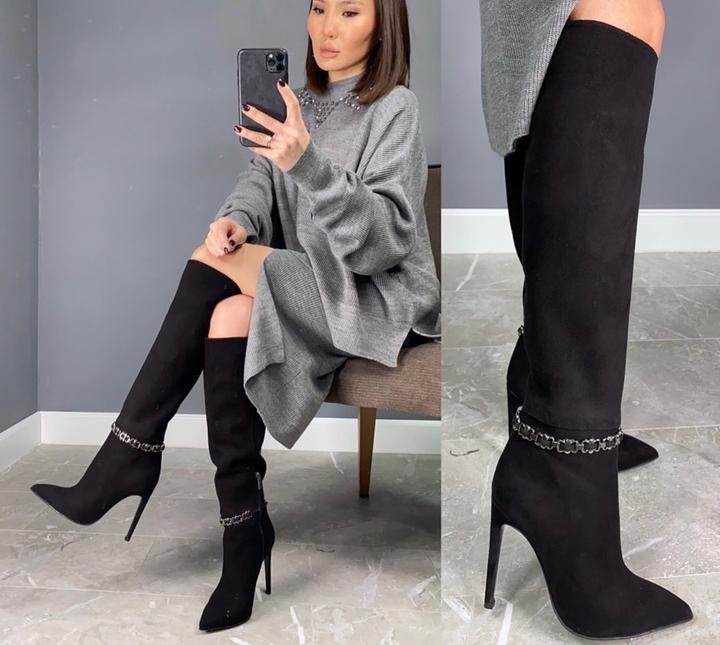 Шикарные сапоги 40 размер 10,5 шпилька Натуральная замша Широкое голенище Артикул: 536682