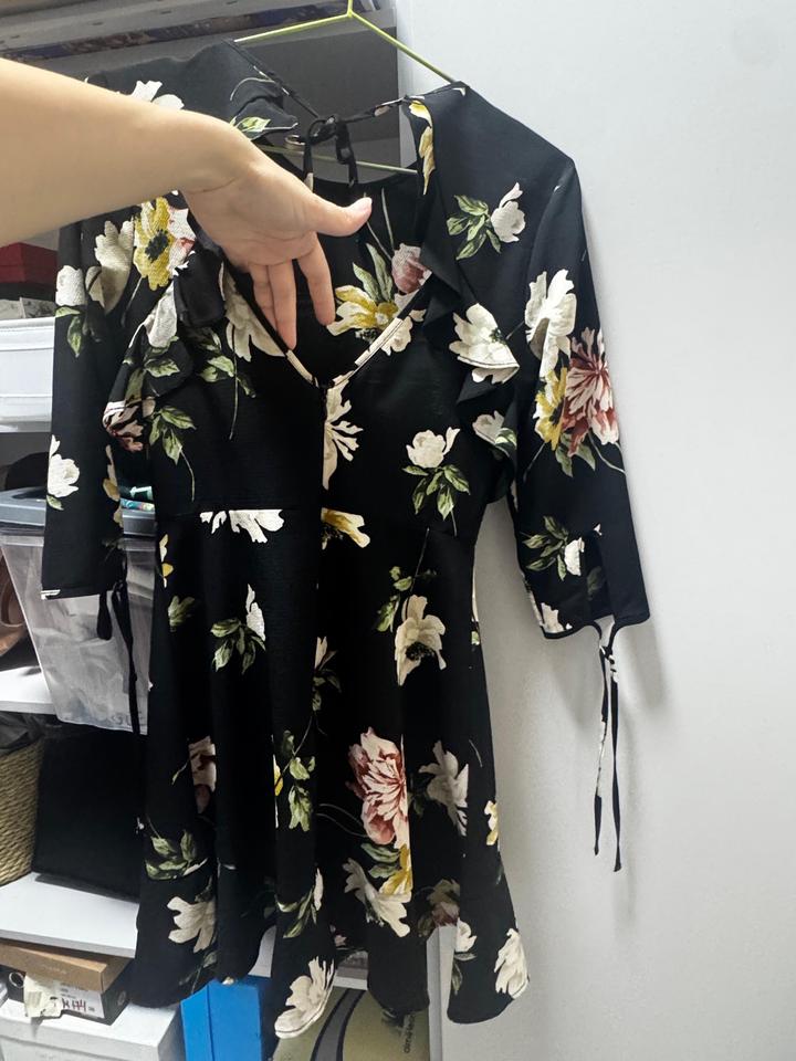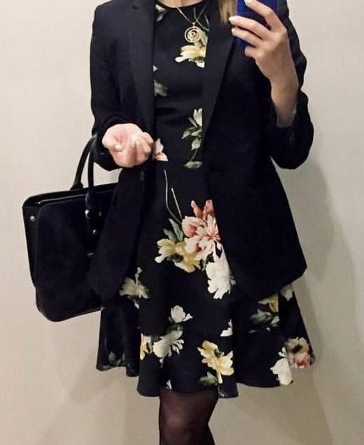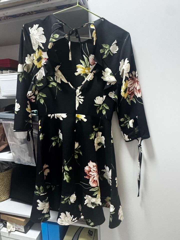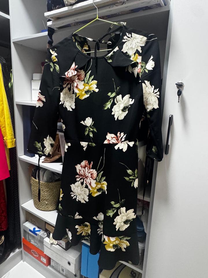 Черное платье со средним цветочным принтом, 36-го размера(S). Артикул: 536770