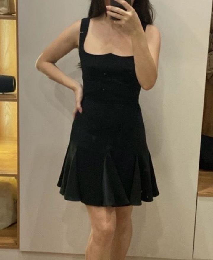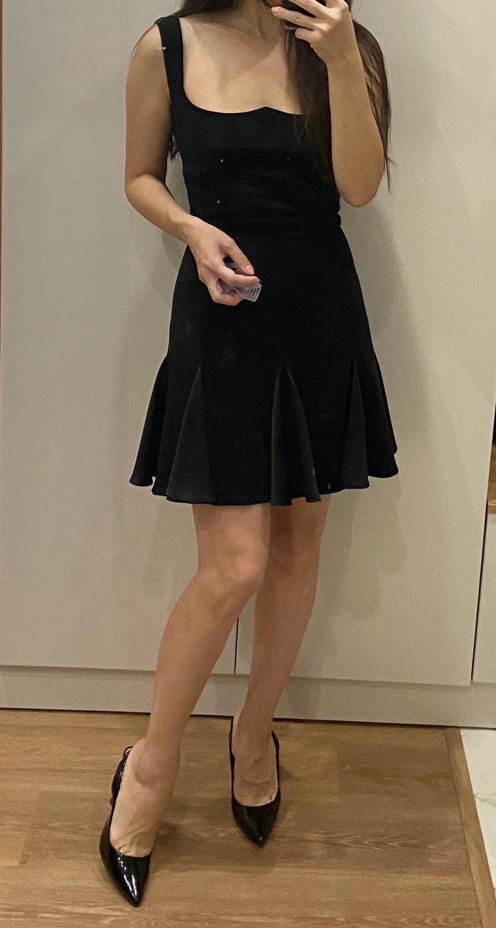 Черное брендовое мини платье, производство Казахстан, с атласными вставками на юбке платья, смотрится очень красиво, к сожалению выросла из этого размера. Размер XS-S Артикул: 536785