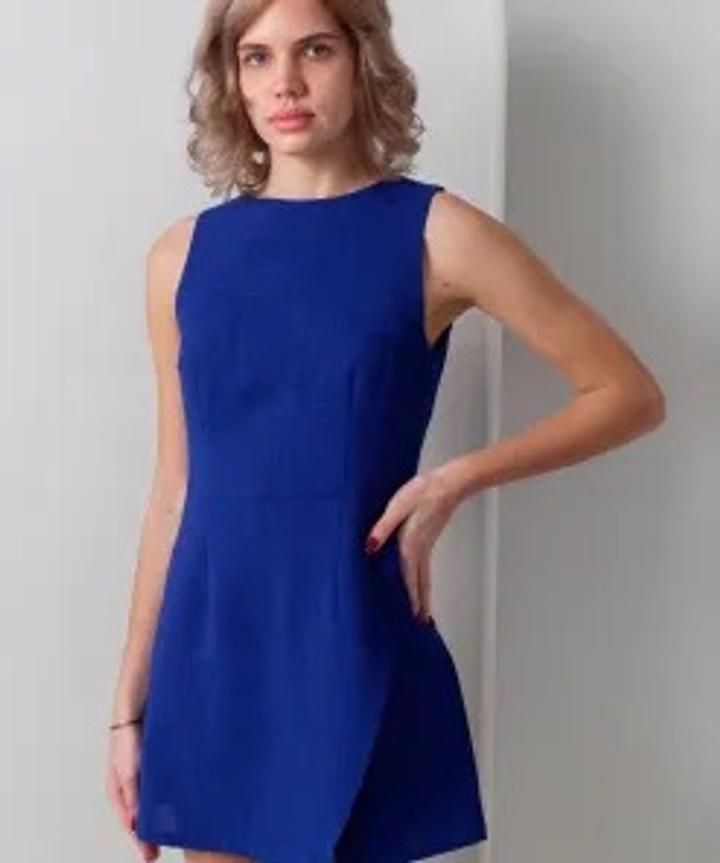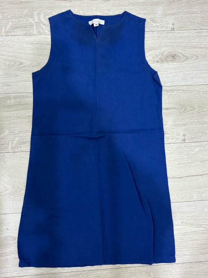 Платье синее индиго а силуэта для стройной девушки из льна Артикул: 536794