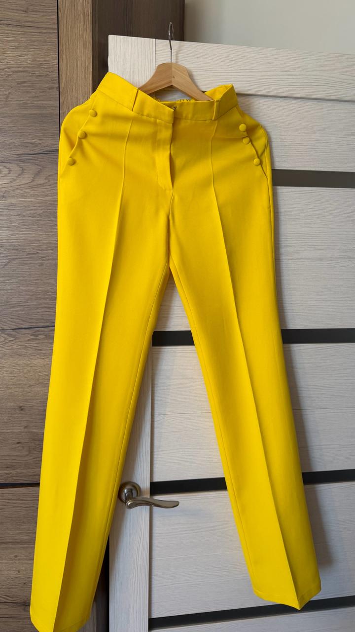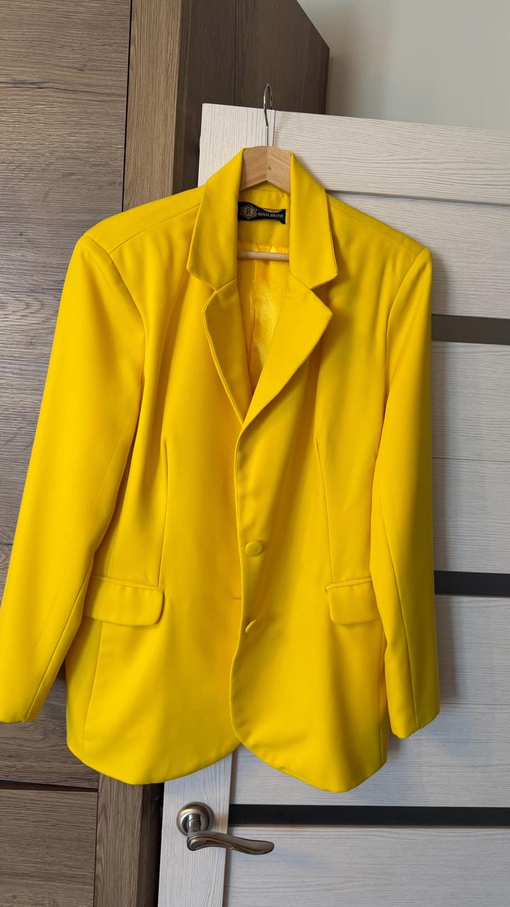 Желтый красивый костюм, размер 42-44, пиджак оверсайз, штаны классно вытягивают ножки Артикул: 537012