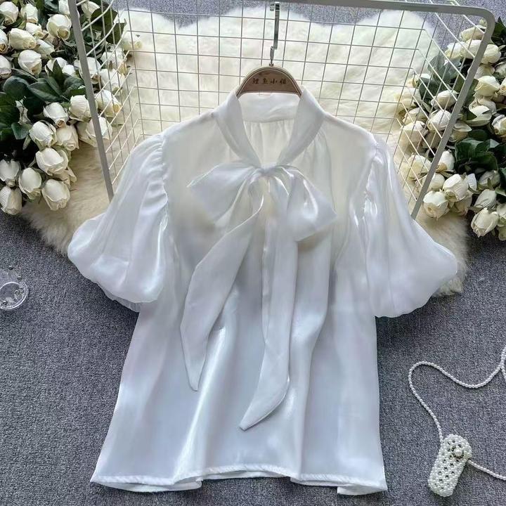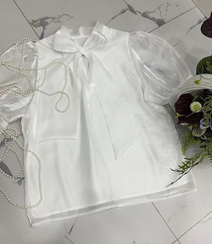 Блузки из органзы в горошек из с бантом создают аккуратнный и элегантный вид Артикул: 537026