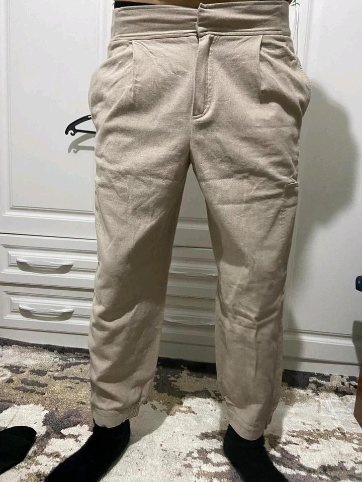 Мужские льняные брюки Massimo Dutti с защипамиXS/S