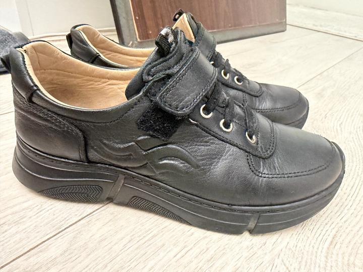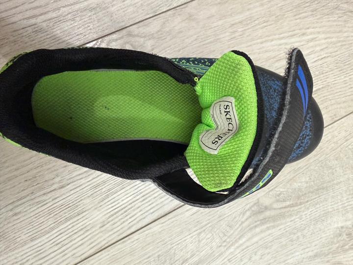 Кроссовки Skechers 33 размер, в подарок чёрные туфли тоже 33 размера. Замазали кремом, туфли изношенные - в плане краска отошла на носках. Кожаные, ортопедические. Артикул: 537146