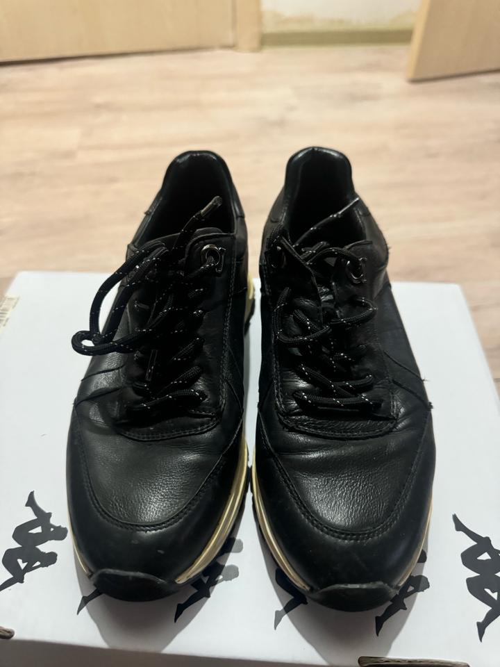 Кроссовки классика в черном цвете с белой подошвой, натуральная кожа, если покрасить подошву специальной белой краской будет как новая, подойдет на 35,5-36 Артикул: 537168