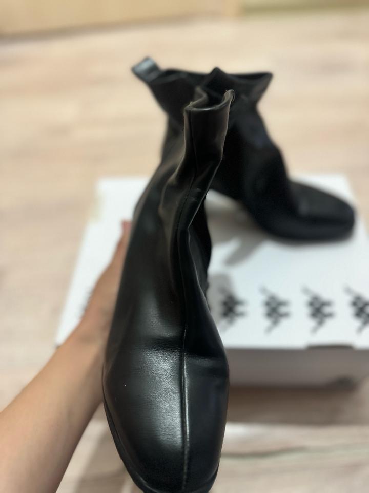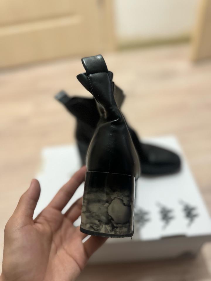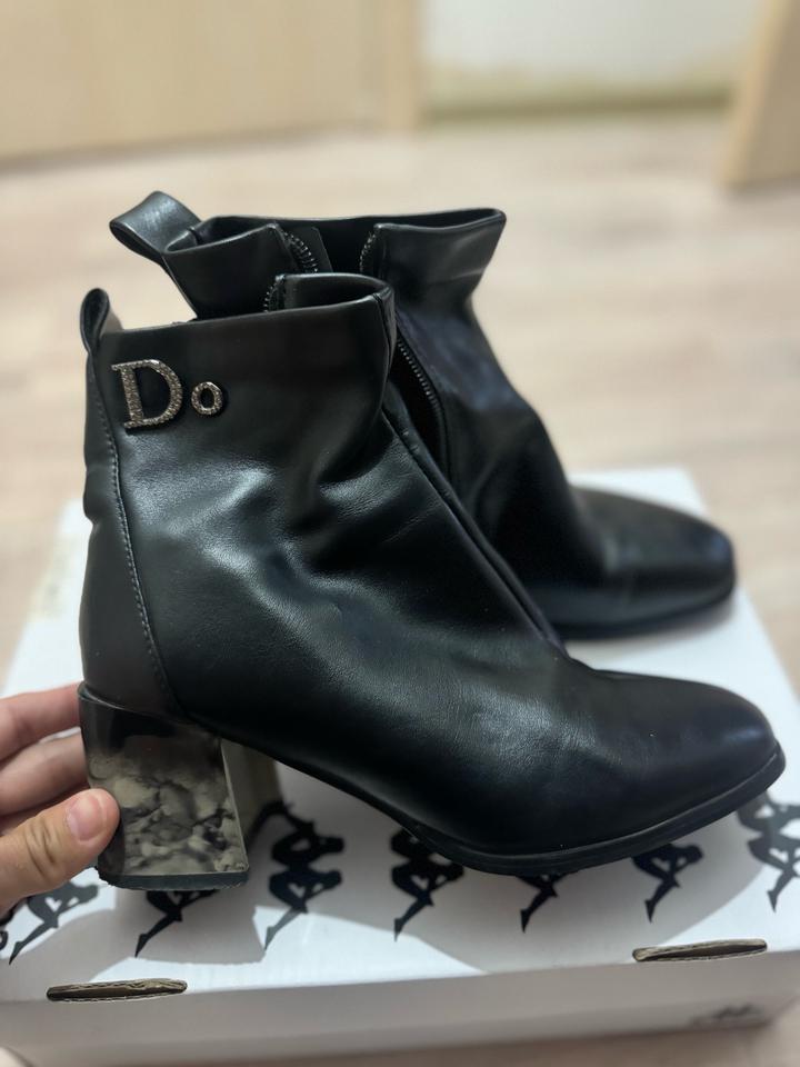 Черные ботильоны с акцентным принтовым каблуком, материал экокожа, каблук 4-5 см, очень удобный, отлично подойдет на каждый день, внутри тонкий флис, подойдет на теплую осень-весну Артикул: 537172